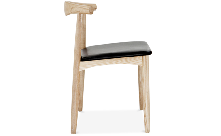 極簡的經典作品,由高超的工匠技術打造。蒸氣彎曲的橢圓椅背以一體成型的木頭雕塑製成,獨特的坐墊底部由11層的原木層壓板製成,提供了卓越的穩定性。椅子主體來自白色柔和的山毛櫸,而坐墊則由天然牛皮製成。Elbow Chair 椅背優美自然的弧度及觸感,清晰的流露出 Hans J. Wegner 對於天然木質中優雅感性的無止盡追求。