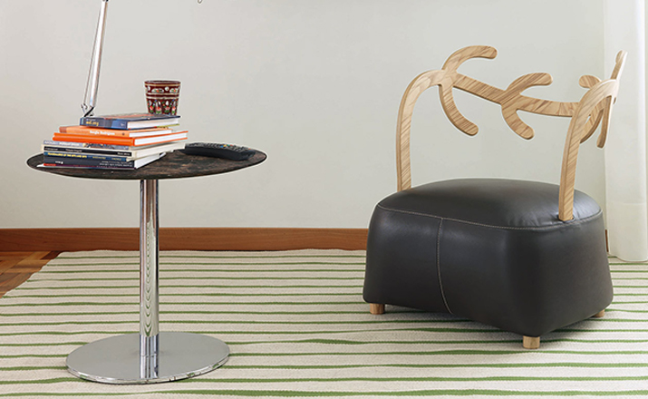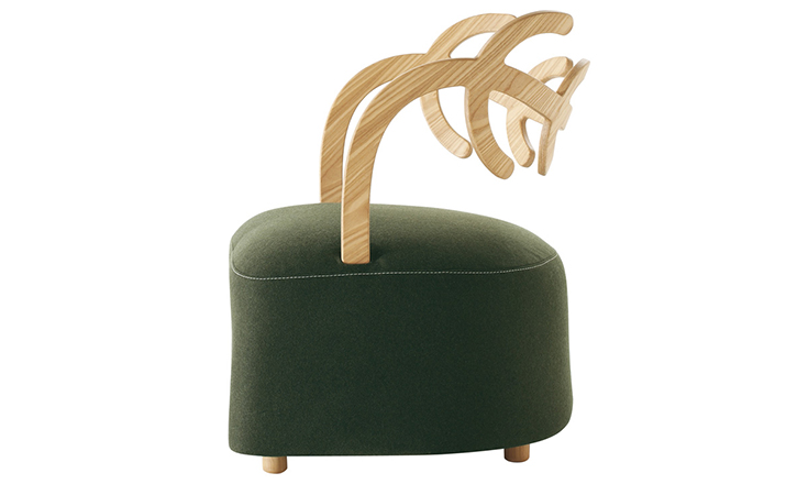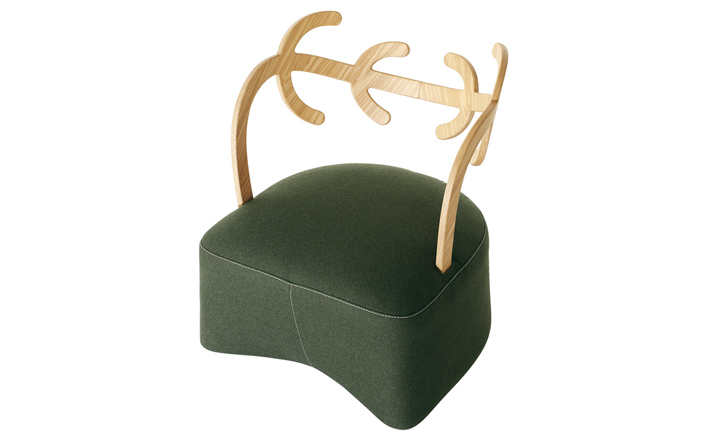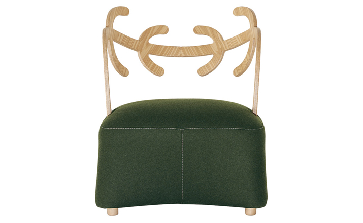 Antler Sofa(鹿角沙发)是日本设计师佐藤大(oki sato)设计的经典创作,低扶手椅、 组装固体灰橄榄树染靠背、 模塑聚氨酯的柔软坐垫,扪面装饰毛毡织物 (灰色、 绿色,浅褐色和暗褐色) 或皮革。明亮的封皮有对比接缝的棕色,暗色的接缝看起来就像沙粒的基调,腈纶纤维披覆藏羔羊毛皮的坐垫,固体灰色的脚架。