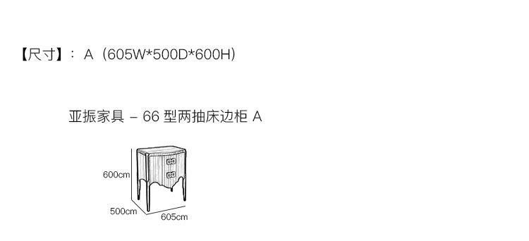 亚振家具 - 66型两抽床边柜 产品尺寸/示意图