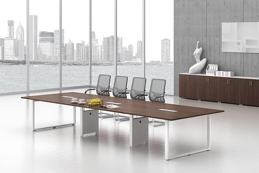 凯撒系列,源自德国的设计风格,糅合木的柔美与刚强的特质,深褐色的睿智理性与白色的纯净空白带来强烈的视觉对比。桌脚部位采用白漆方框金属支撑架,或是装饰或是必须,恰到好处地表现凯撒的艺术姿态。如此,简练高雅的设计,体现出东方华奥现代办公打造的高品位、个性化的办公方式。