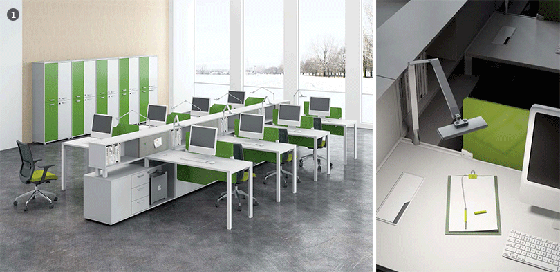 | 1、每个工作台旁边配储物柜,更多私人空间,还配备台灯,给予更好的工作体验; |