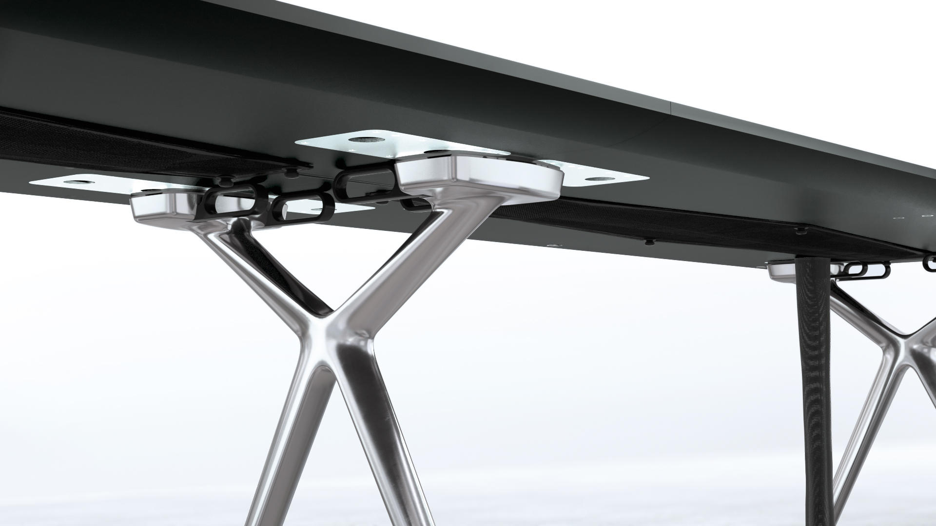 这款Conference-X最大的亮点就是:桌子腿是可以将两个桌面一起快速而轻松地结合在一起,而不需要借助任何工具。而这个专利技术的的连接关键是:桌子腿顶部处在固定锁,桌底有锁扣,以此保证绝对安全和稳定。这也很好的解决了会议台的多样性:从个人的工作桌到成排的会议桌,桌子形状、大小、都可以通过脚架来进行拼接.