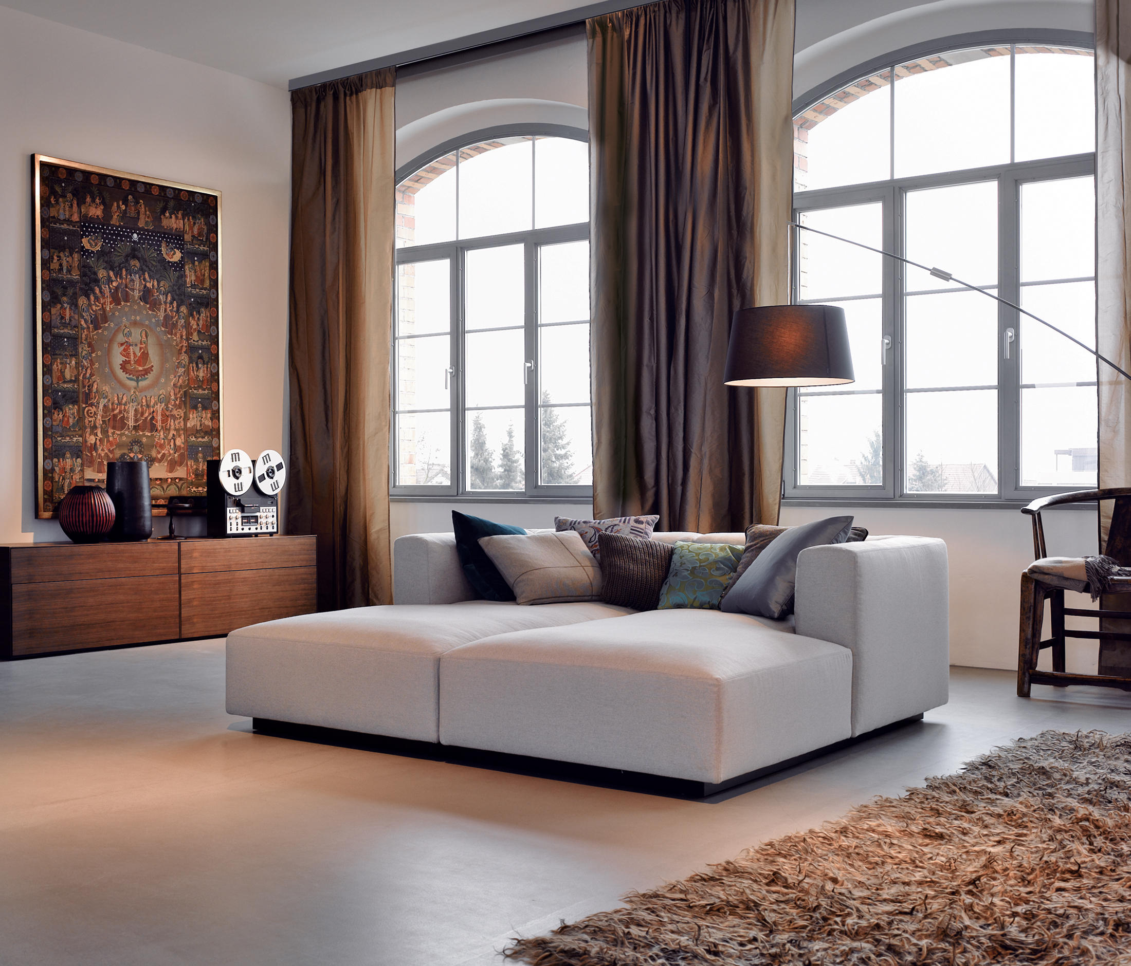 坚固的立方体,同时又很舒适。这款沙发系列将经典的造型、独特的舒适和首屈一指的工艺形成持久的价值观。柔软的内饰结合体积和伸长,用直线和曲线精确的拼接缝绘制轮廓。