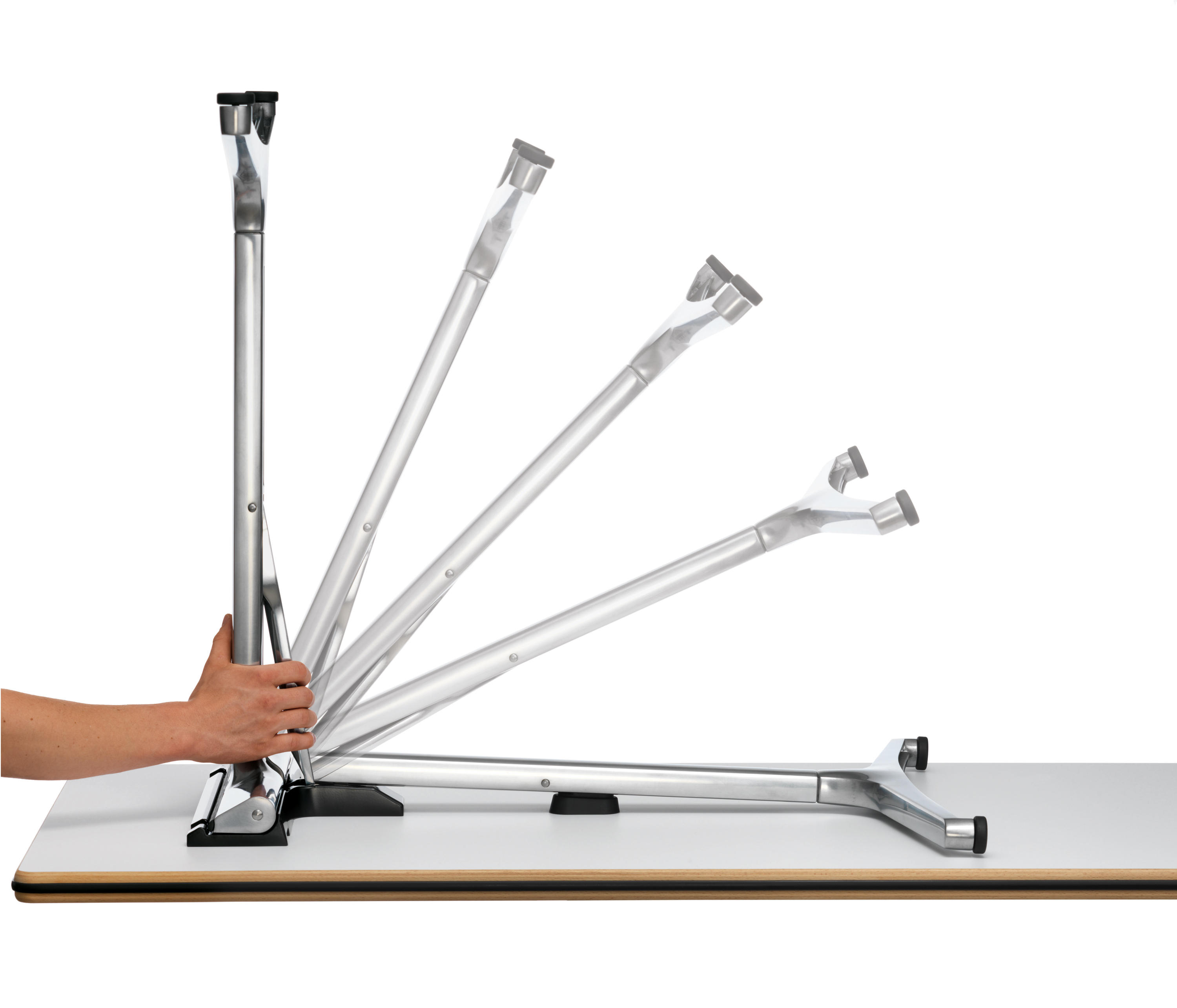 折叠桌的设计是为了给储存空间提供灵活的解决方案。在处理储存方面上,其设计的品种和质量对设备管理成本的影响受到了用户的赞赏。这就是mAx迷人的地方。设计精巧的折叠桌可以被紧凑的堆放,而且只需要一只手就能进行折叠。时尚的T型脚的材料和工艺保证了桌子的坚固耐用。
