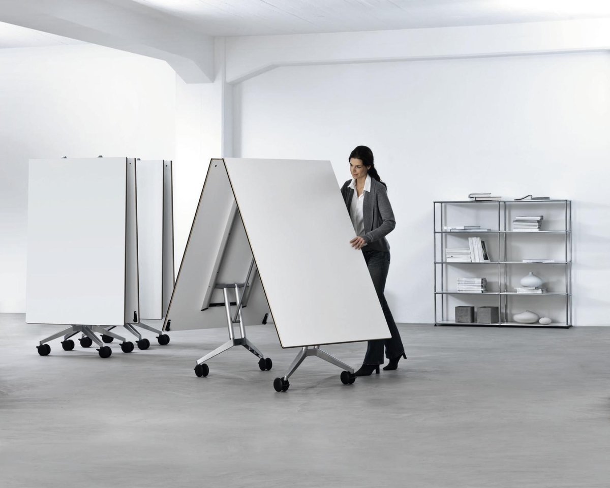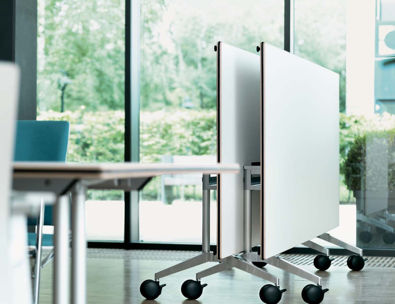 这张桌子在节约空间方面有着出色的设计。分工合作、灵活的团队合作以及自由职业者与项目团队的短期整合已经成为我们日常工作的一个组成部分。也就是说,这是在工作环境必须体现出来的时候了。这就是为什么我们设计了一张能容纳个人或者八人组的会议表。它可以简单地与其他个人桌子连接起来,形成一个会议桌,并且可以在不需要的时候立即折叠起来,放置在房间的一侧。因此,每个人都可以像环境所允许的那样富有创造力。