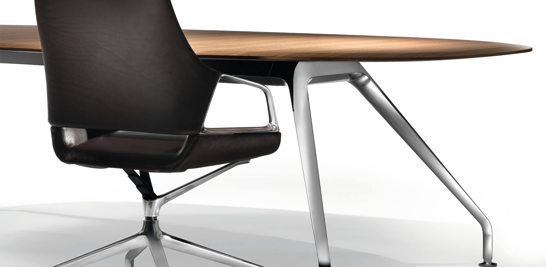 他的Graph反映了图表会议椅的主要设计特点。椅子的足部、扶手都可以在Graph会议桌上无缝反映出来。在桌子的框架上,铝的框架与倾斜的压铸铝腿和它们弯曲和扁平的外观相呼应。因此,在工作台框架上,灯线始终如一地出现,从而使框架具有无缝外观。巨大的跨度也给人留下了一种优雅的印象,引力似乎在那里几乎停滞了。这个ef fect是由不对称曲线的表边和表的圆角来增强的。