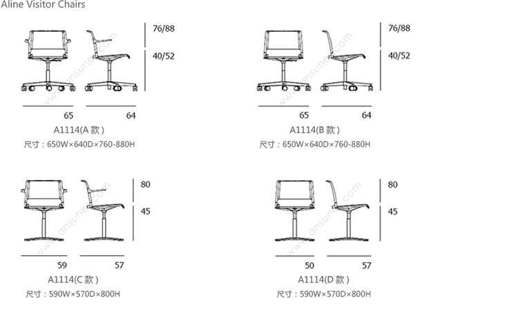 Aline 232/1 职员椅 系列尺寸/示意图