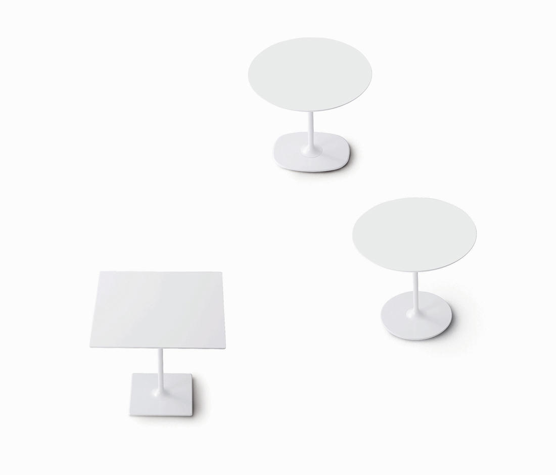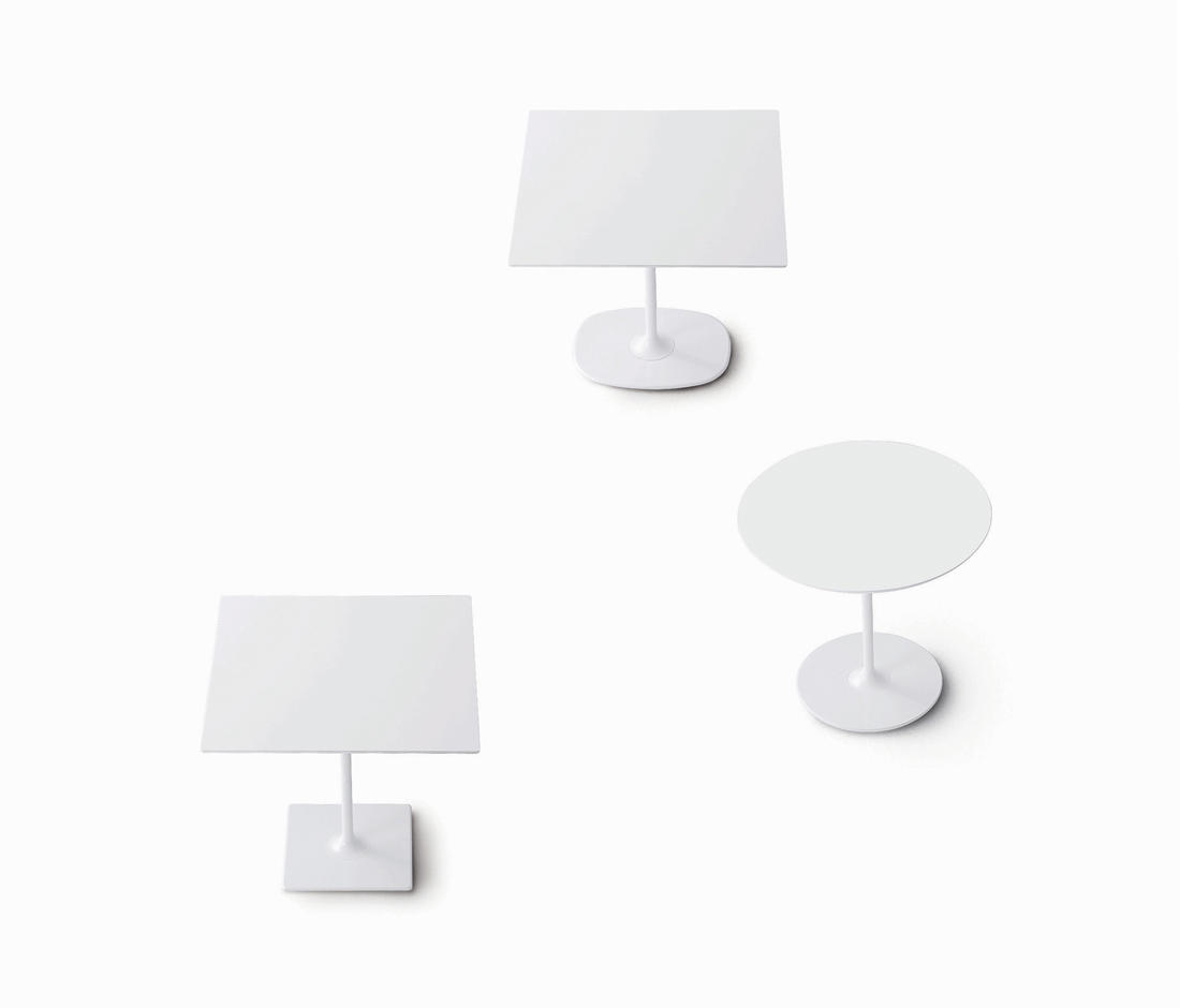 餐台带双椭圆形底座,白色有光泽或黑色哑光粉末涂层钢,顶部为白色压花MDF(厚2.5厘米)或层压板FenixⓇ(厚2,6厘米),有不同尺寸可供选择。 身高74厘米。
