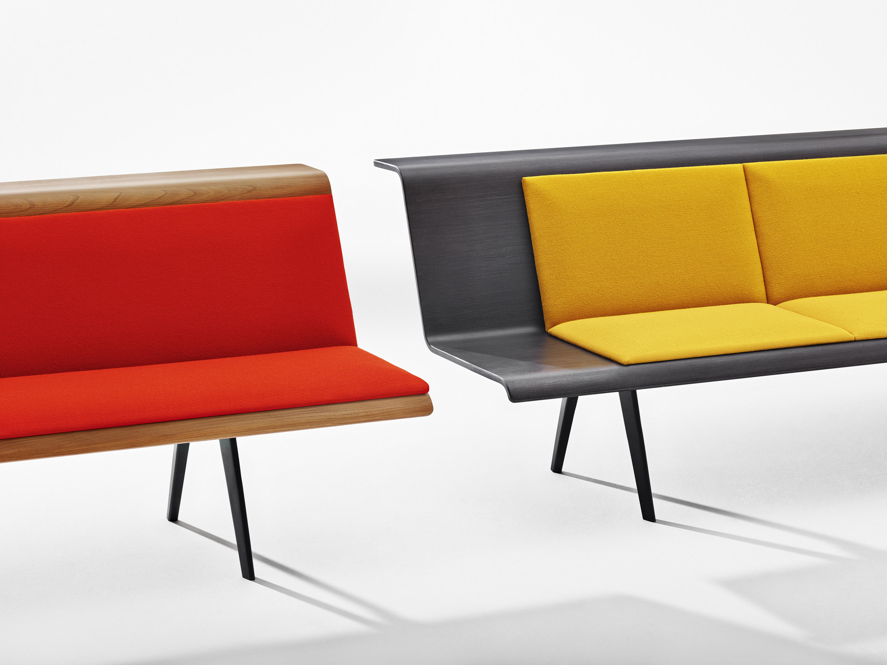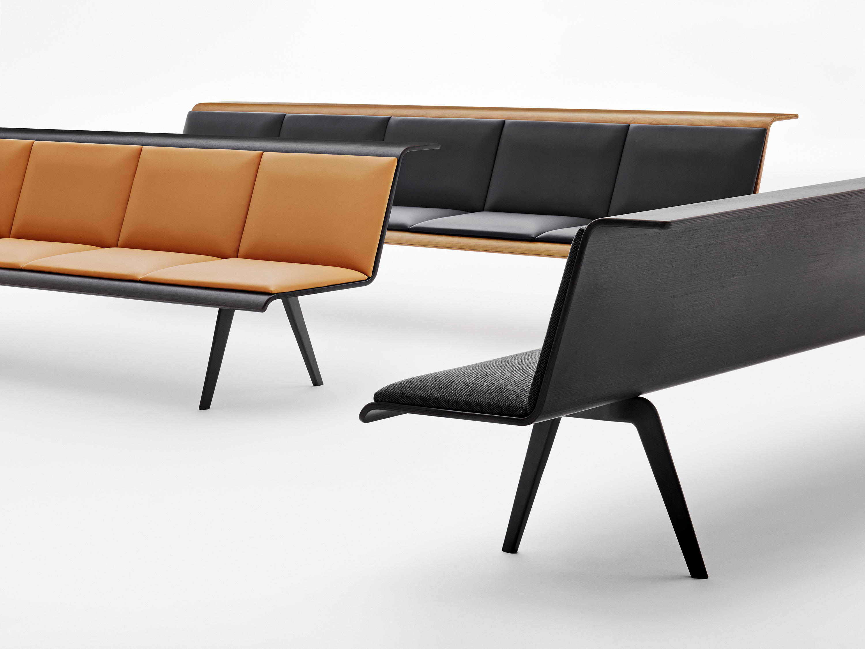 Zinta由木质外壳衬垫,用于收缩或垫子,以便在选定的一组织物中提供更加容纳的座椅。多种尺寸,材料和填充允许多种组合和应用。贝壳采用天然,棕色和深色橡木制成的木饰面。底座和铝腿仍涂有深灰色。可选配胶合板扶手。多种长度和角度可实现无限组合。