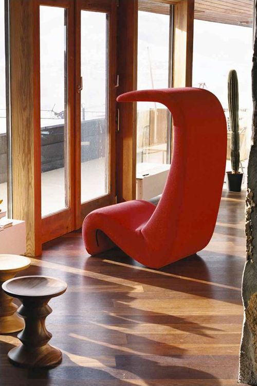 椅子的Amoebe Highback版本有一个灵活的靠背,可以在保姆的头部弯曲,形成一个雕塑的顶篷。 这种醒目的口音赋予椅子一种住所和隔离感。