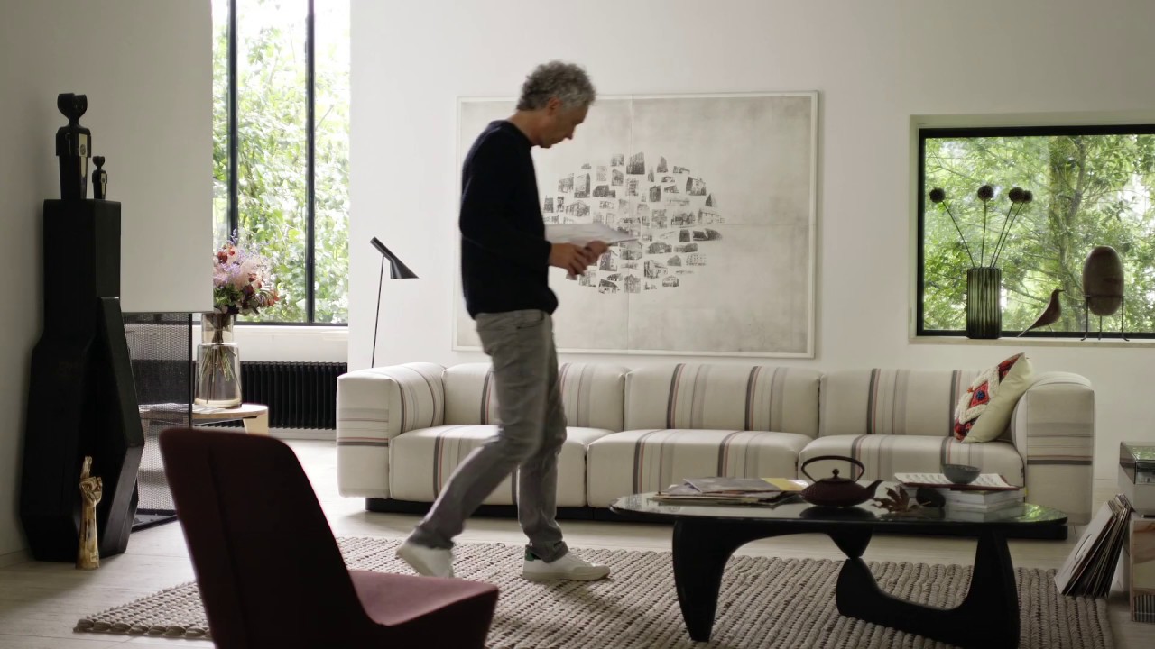 Aura Stripes是一种新的条纹面料,唤起了光影的俏皮效果,被英国设计师选中,以强调沙发在许多可能配置中的简洁线条。 Aura Stripes采用彩色大理石制成,从2018年9月1日至2019年12月31日,Vitra作为Soft Modular Sofa的覆盖面料独家提供。