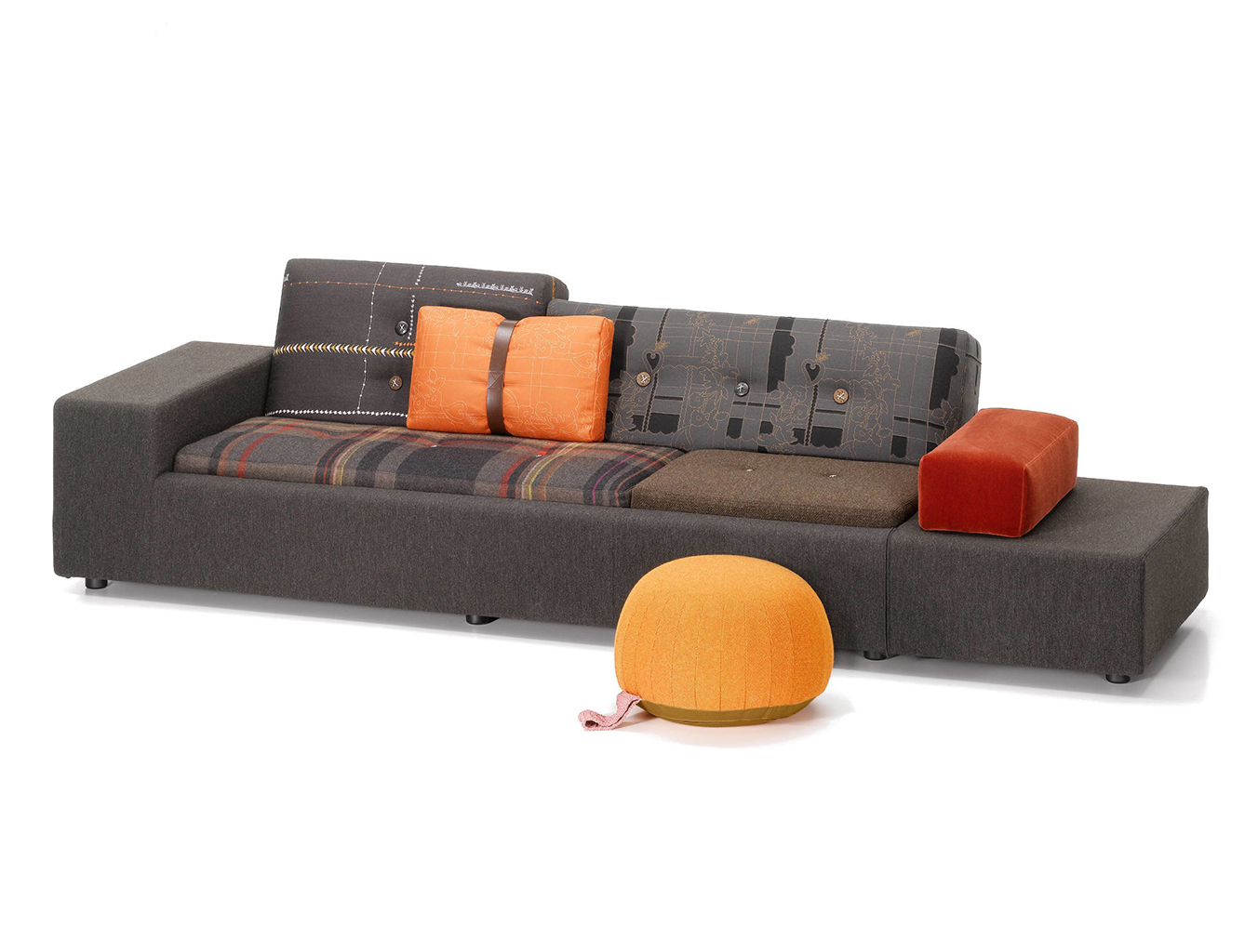 Hella Jongerius的Polder沙发在任何内饰中都创造了一个焦点:它的不对称形状和各种面料和颜色的靠垫赋予它独特的标志性外观。