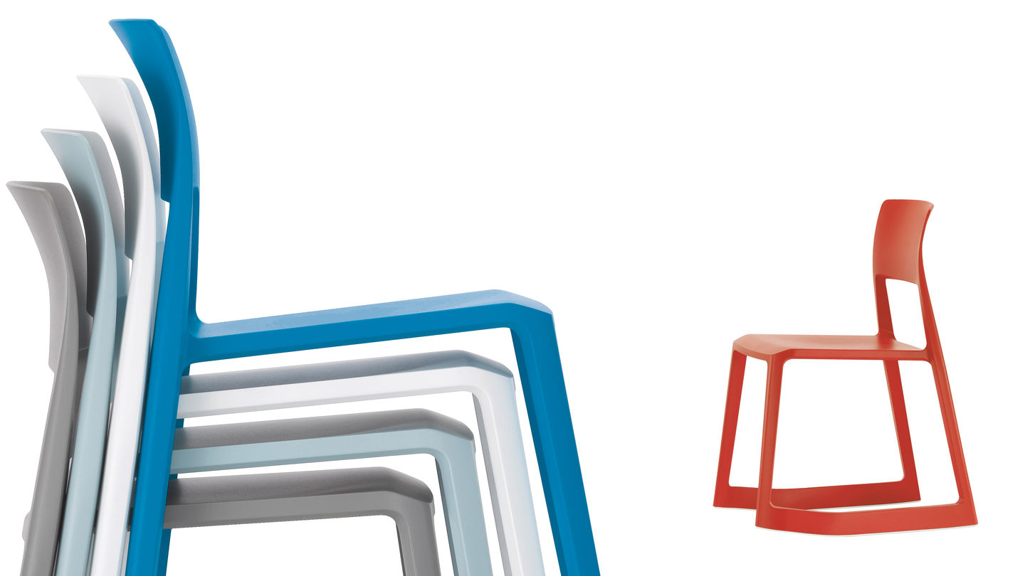多用途椅子Tip Ton by Vitra代表了一种全新类型的椅子,因为它可以作为第一个坚固的塑料椅向前倾斜并邀请您摇滚,这为他赢得了他的名字。 Tip Ton由Edward Barber和Jay Osgerby设计,设置了骨盆和骨骼,以促进血液流向腿部和腹部和背部区域的氧合作用。 所以Vitra椅子Tip Ton也适合长时间坐在办公桌前。 Tip Ton满足了真正的多用途椅子的所有期望:例如,作为可堆叠的椅子,它也可以在食堂中大量使用,并且根据颜色,Vitra Tip粘土进入起居室,厨房或露台有时候谨慎,