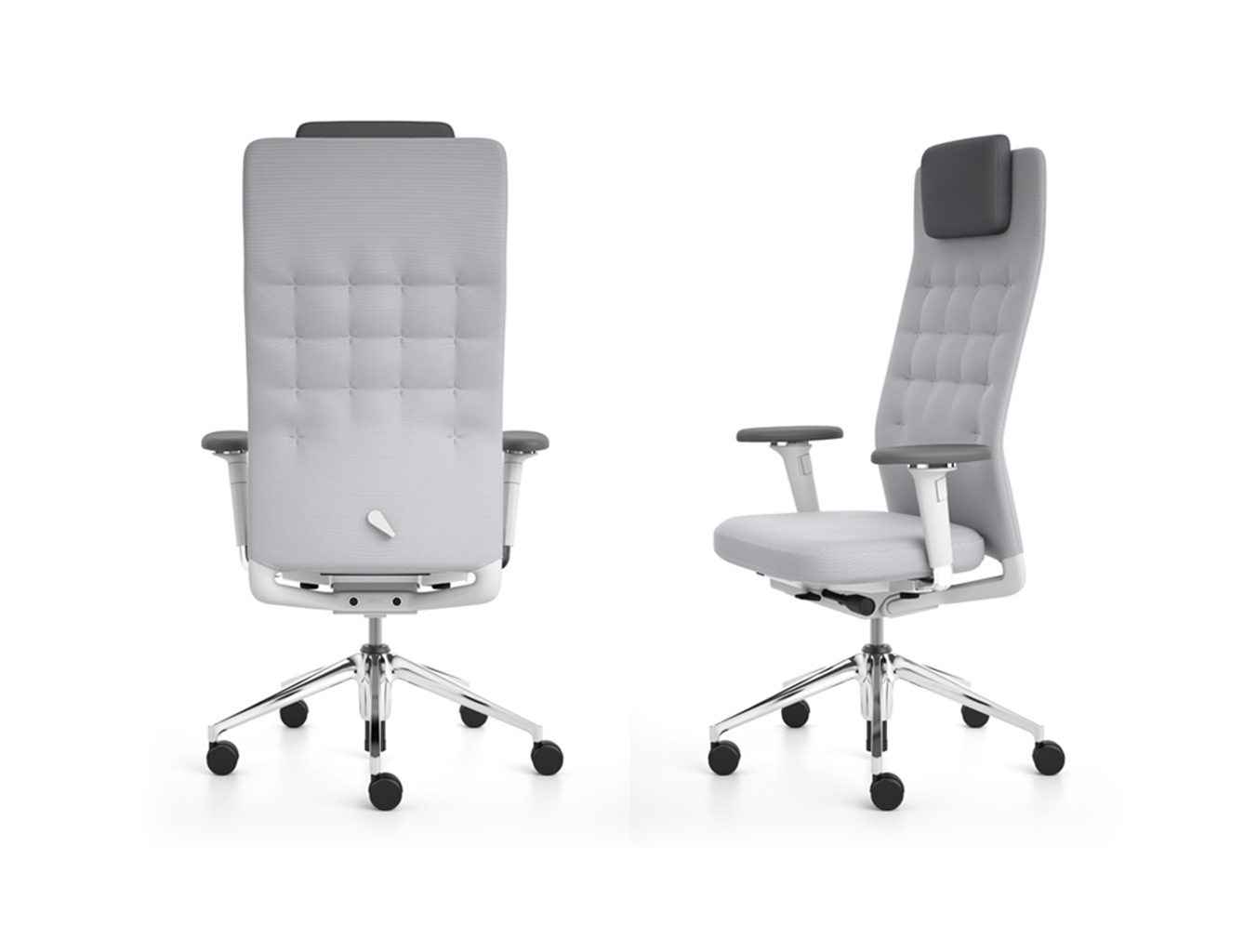 凭借其紧凑的衬垫,ID Trim办公椅的靠背传达出经典优雅和高品质工艺的感觉。 带有一体式腰部支撑的夹层结构提供了舒适的软垫靠背,同时几乎与网状靠背一样纤薄 - 为办公椅靠背提供了这两种结构类型的替代方案。 凭借其高靠背,ID Trim L是行政办公室的绝佳选择,可以缓解头部和颈部的紧张情绪。