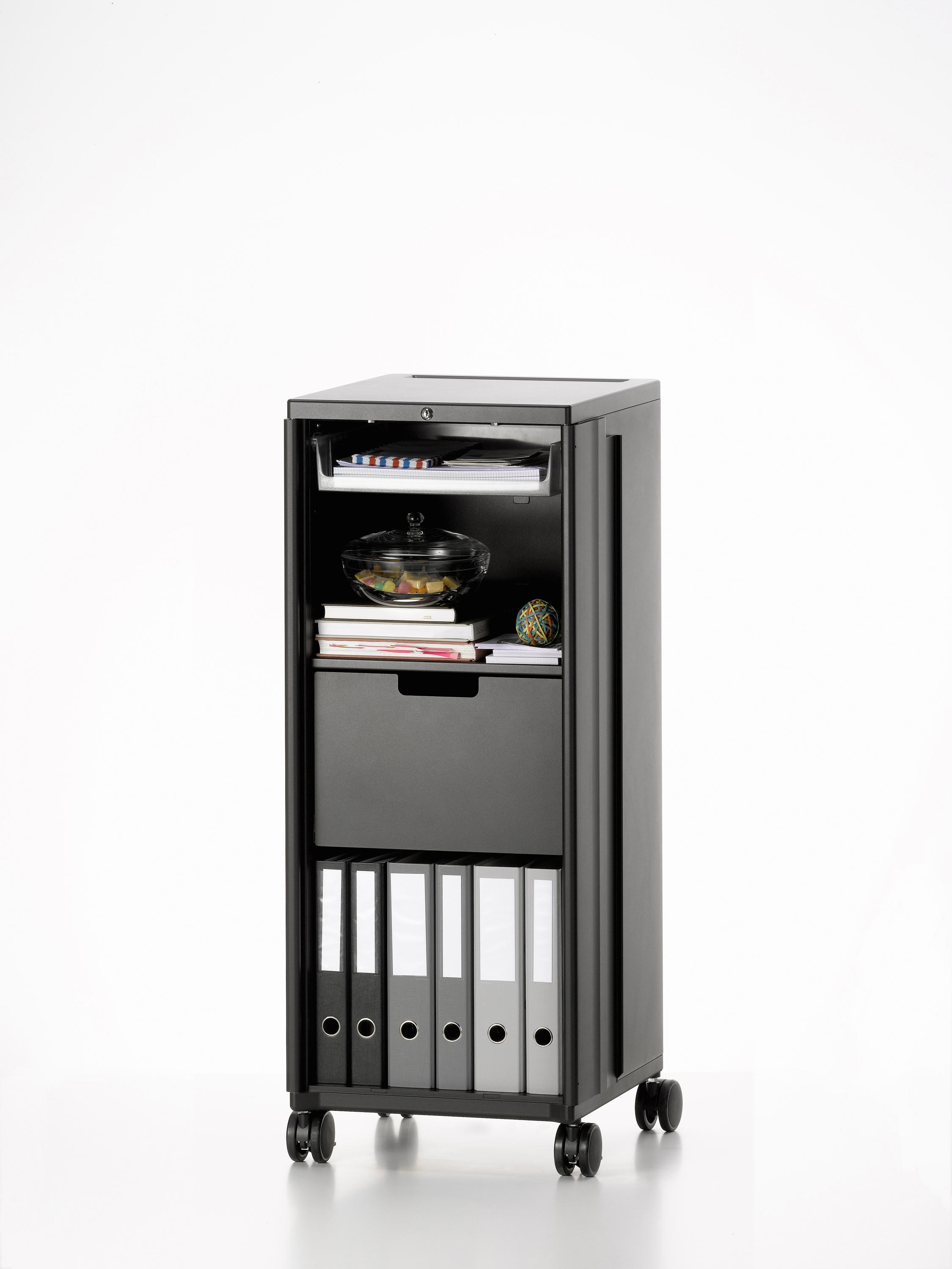 飞机手推车激发了建筑师和设计师Christoph Ingenhoven的灵感,开发出带Vitra的移动存储家具Caddy。 由粉末涂层钢板制成,Caddy坚固耐用,其各种家具选择使其成为办公室的实用伴侣:它还可以配置为复杂的电气化站立工作场所,作为演示投影仪的基础或作为餐饮用途的帮手。