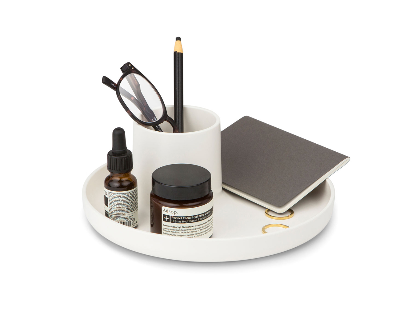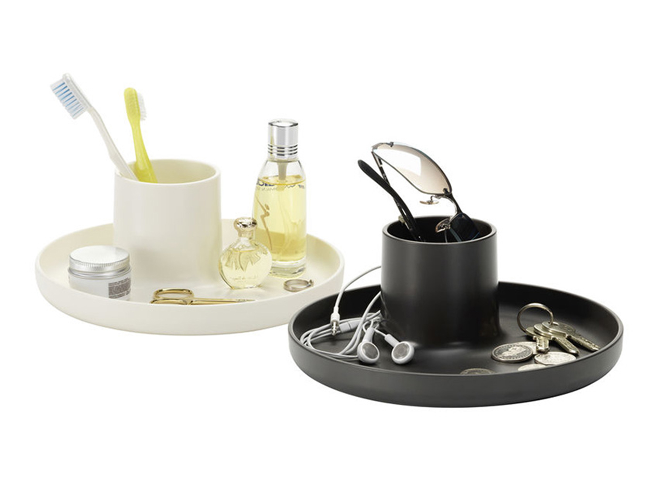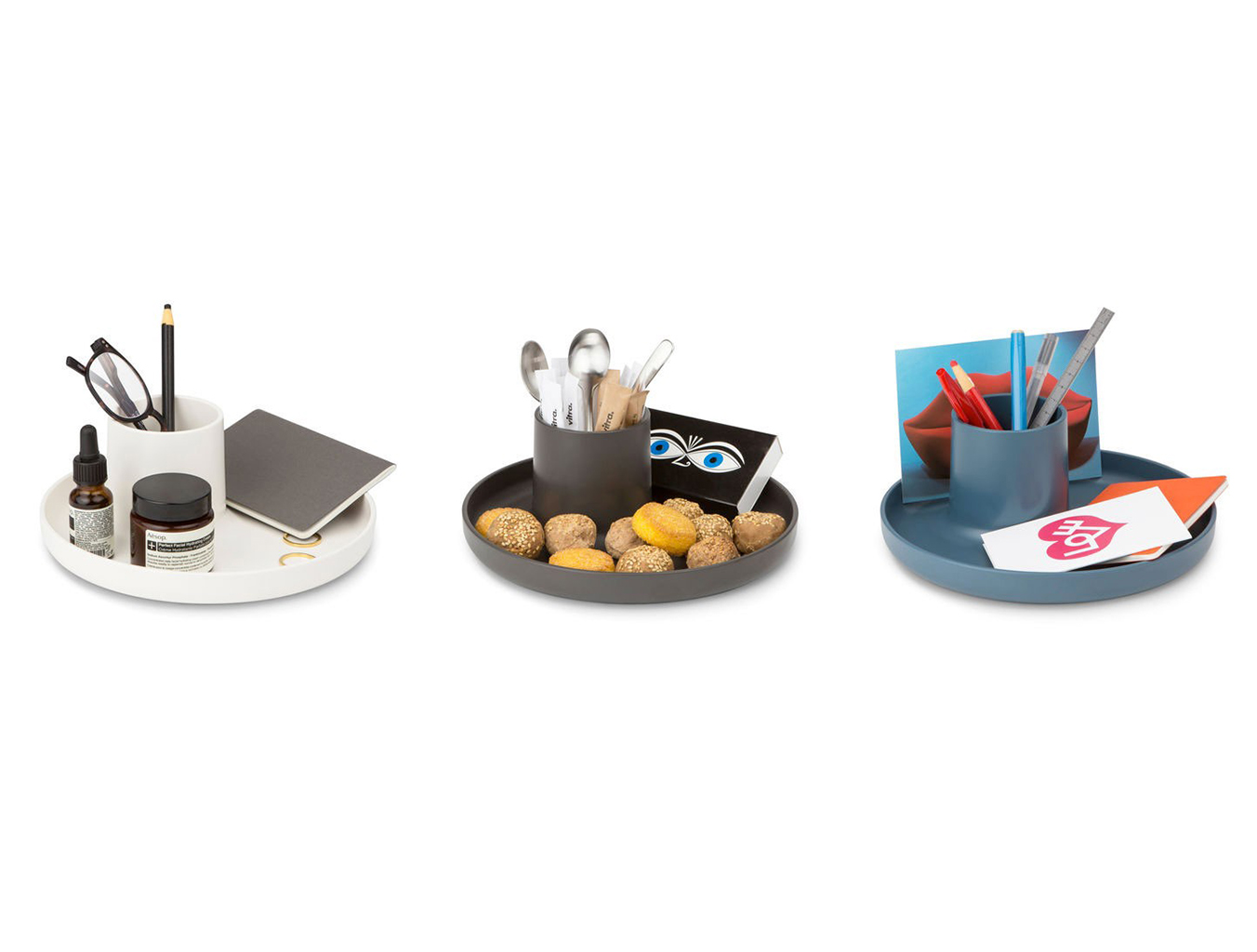 O-Tidy是一种实用的多功能存储容器。 该设计不仅提供托盘和杯子功能,而且还将其简单的形状组合成一个新的,完美比例的物体。