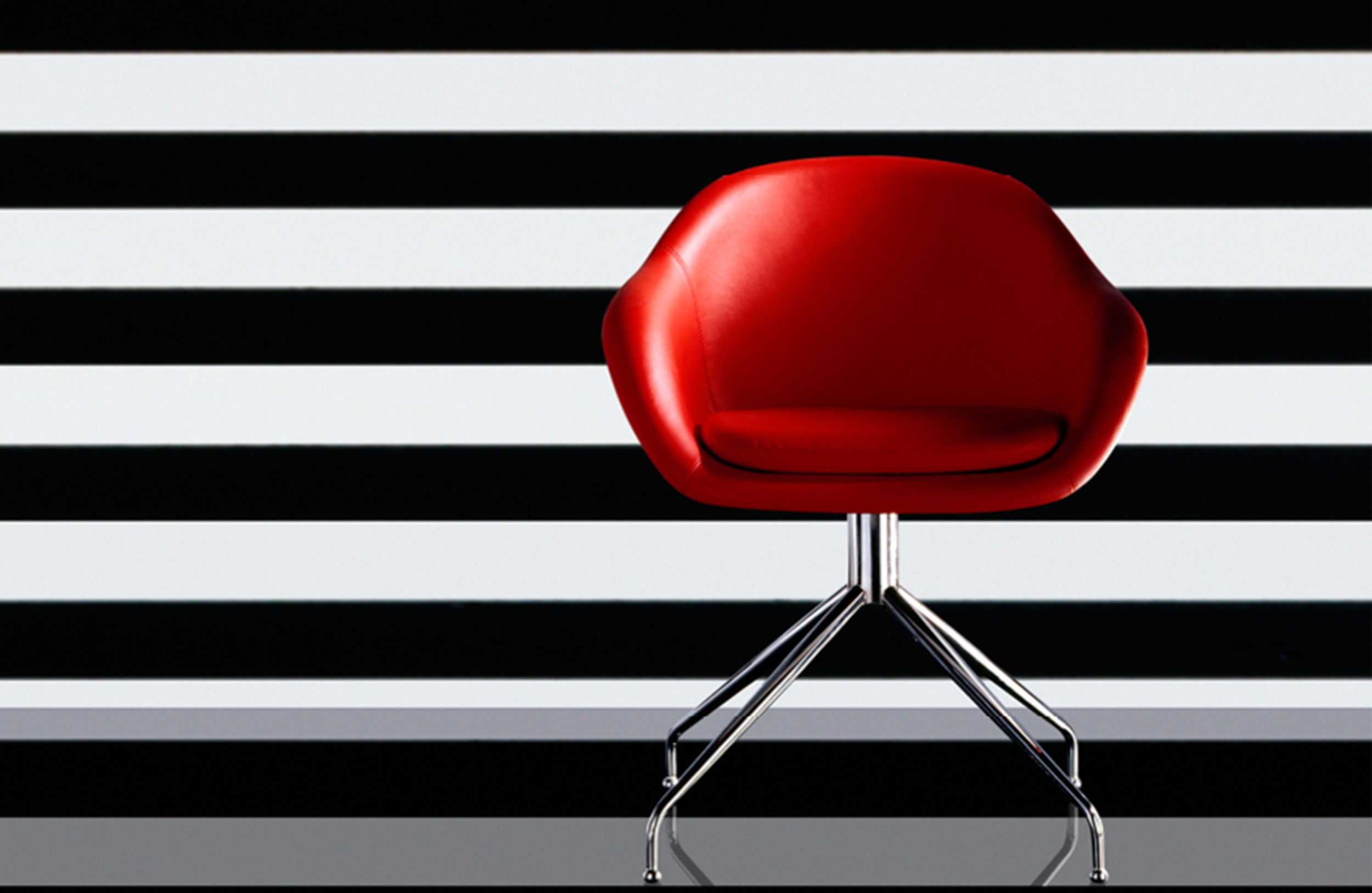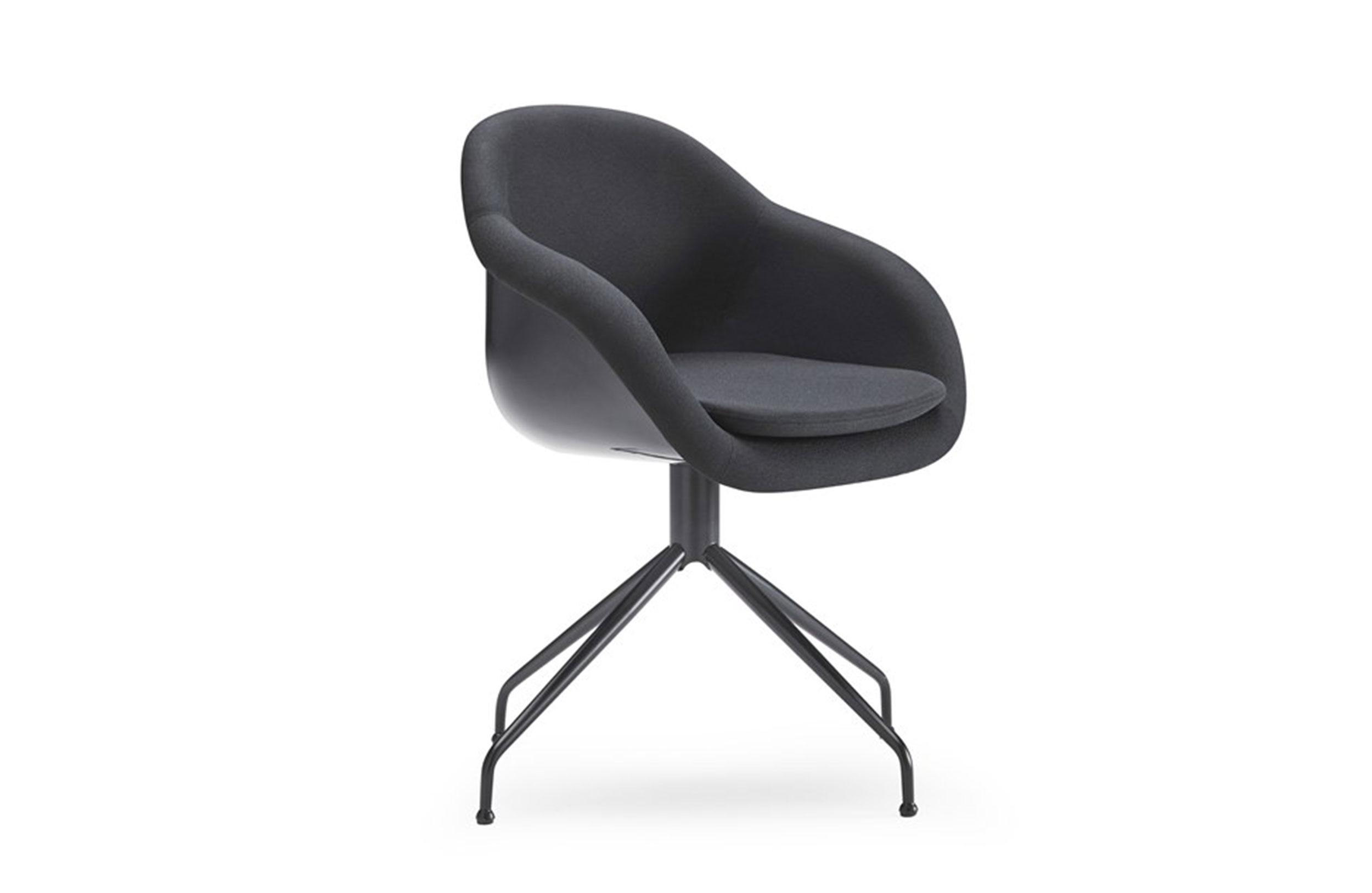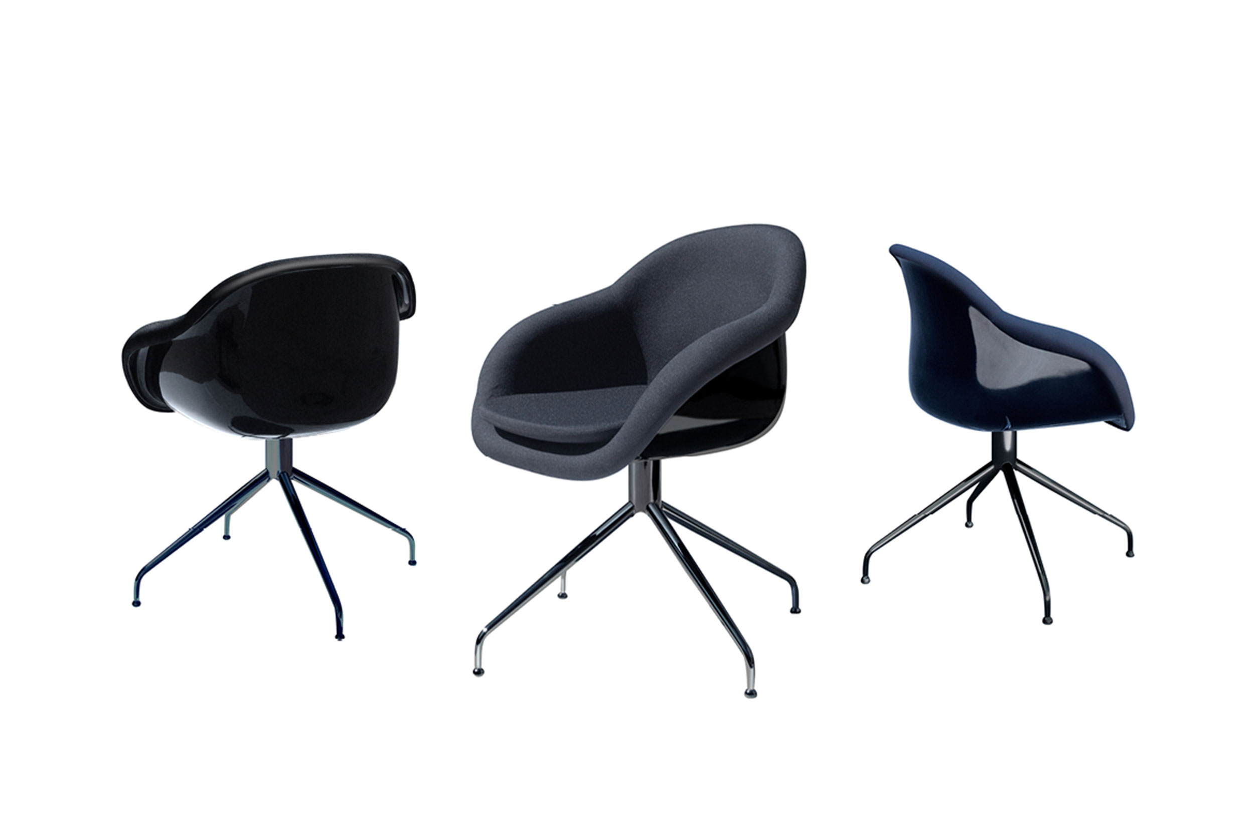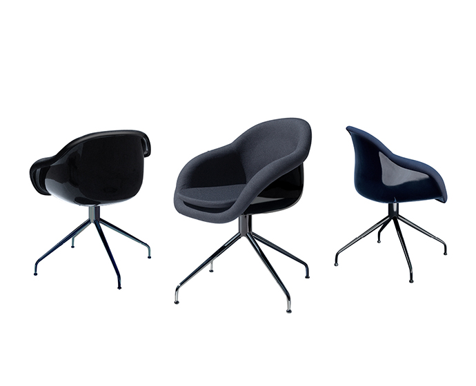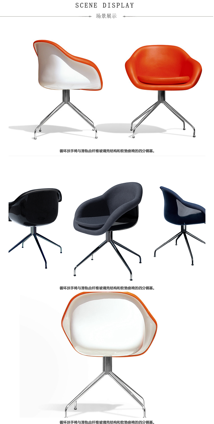 旋转扶手椅。双层成型玻璃纤维芯,无软垫靠背。软垫和胶合内表面。四脚金属脚,不锈钢。表面处理:金属底座采用抛光铬或漆面处理。成型芯为白色或黑色。室内装潢TUNDRA或EXTREM PLUS,技术面料种类繁多。