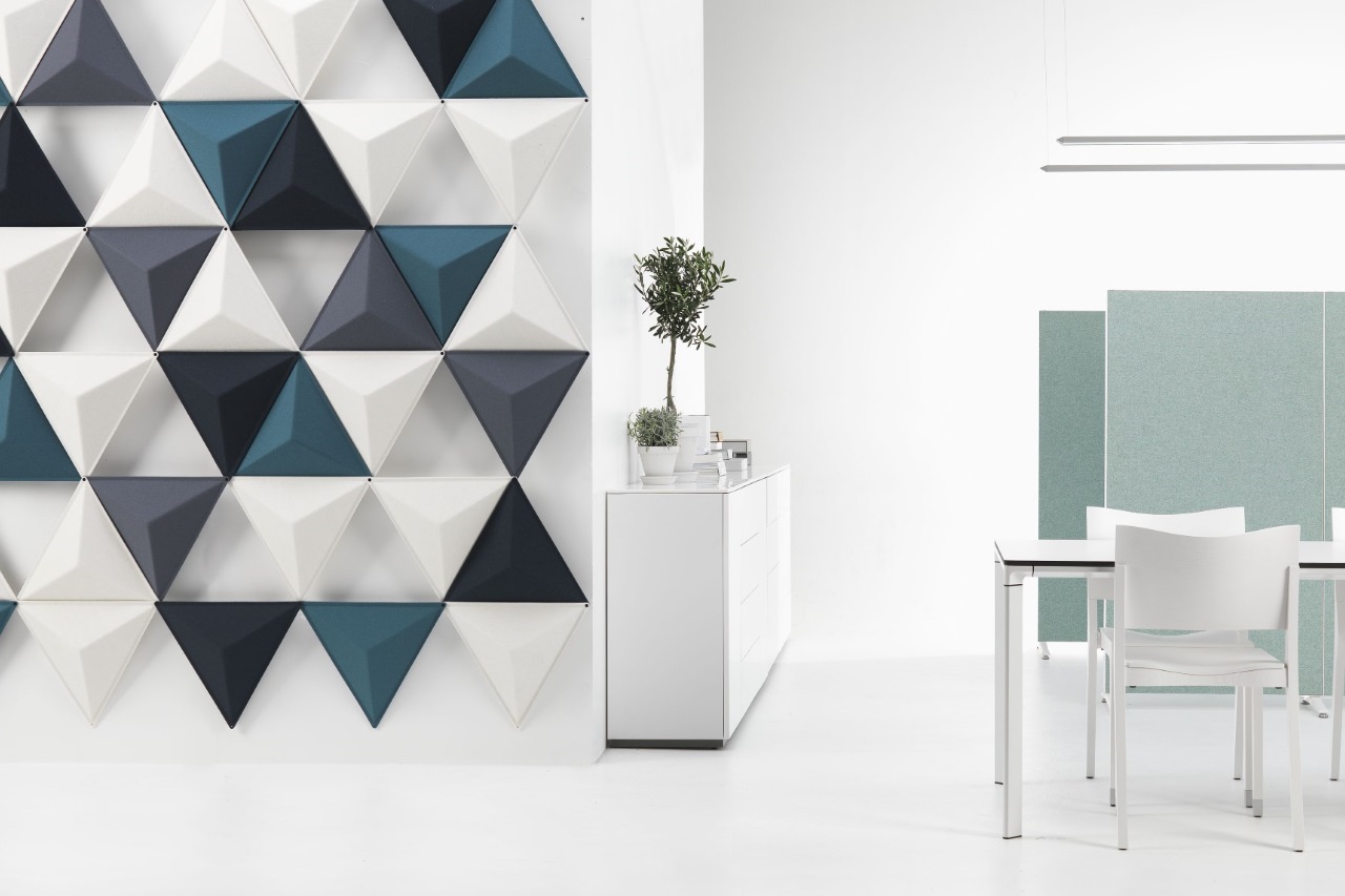 将Aircone与吸音产品相结合,确保出色的音响效果。Aircone包括由模制纤维毡制成的三角形模块。模块可以与剪辑连接以创建不同类型的图案形成。使用白色或银色阳极氧化铝导轨连接到天花板或墙壁。