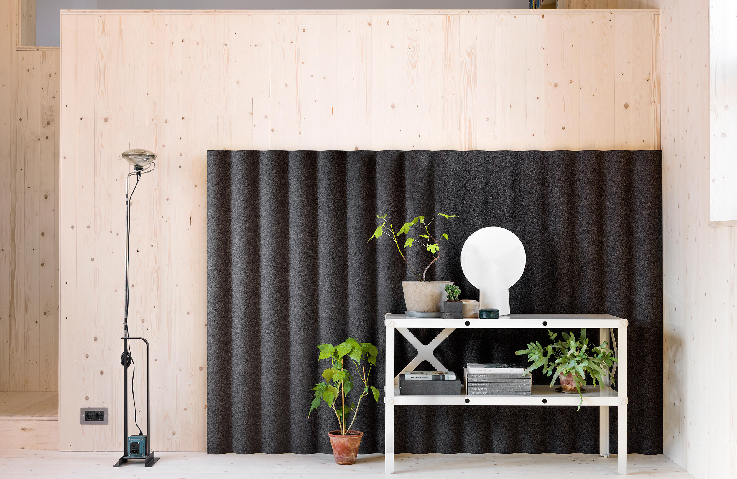 Scala是一个完整的系列屏幕。Scala可以安装在墙壁上,悬挂在天花板上,也可以作为独立式地板屏幕,桌面屏幕和悬挂室分隔板使用。对于地板和桌面屏幕,Anya Sebton开发了由钢管组成的支架,突出了设计的自发方式。