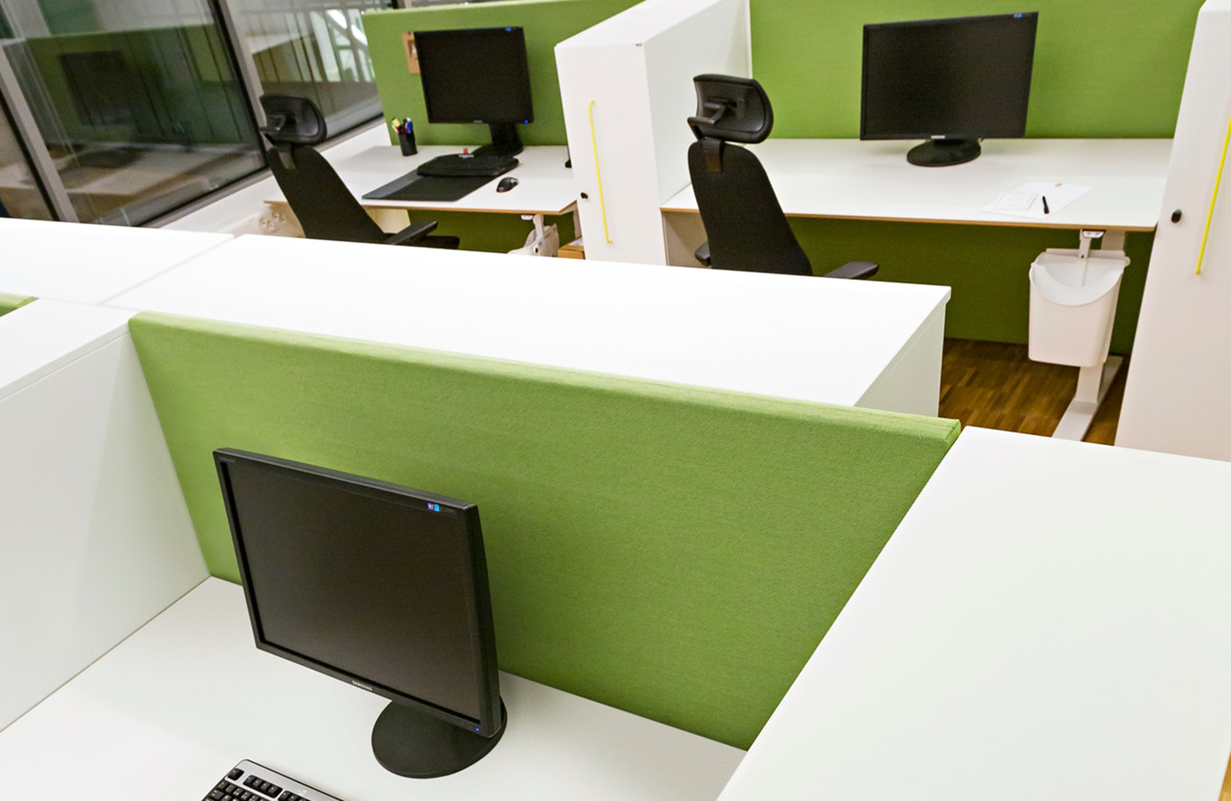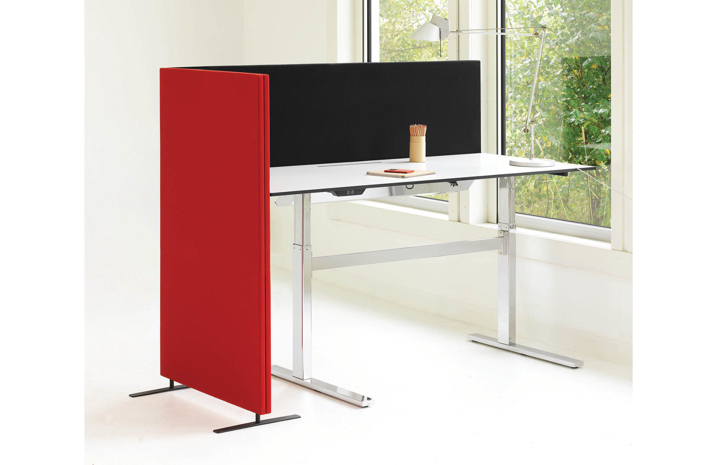 由于其直角,Soneo非常适合在开放式办公室内创建连接屏幕单元。它的吸音性能与各种颜色和标准面料相结合,意味着它是一种易于安装的最爱,融入工作场所。屏幕由安装在实木框架内的吸音填料组成。厚度:50mm。屏幕两侧都装有织物。金属支脚(颜色:黑色或白色),高度50mm。连接器允许多个屏幕连续连接在一起。