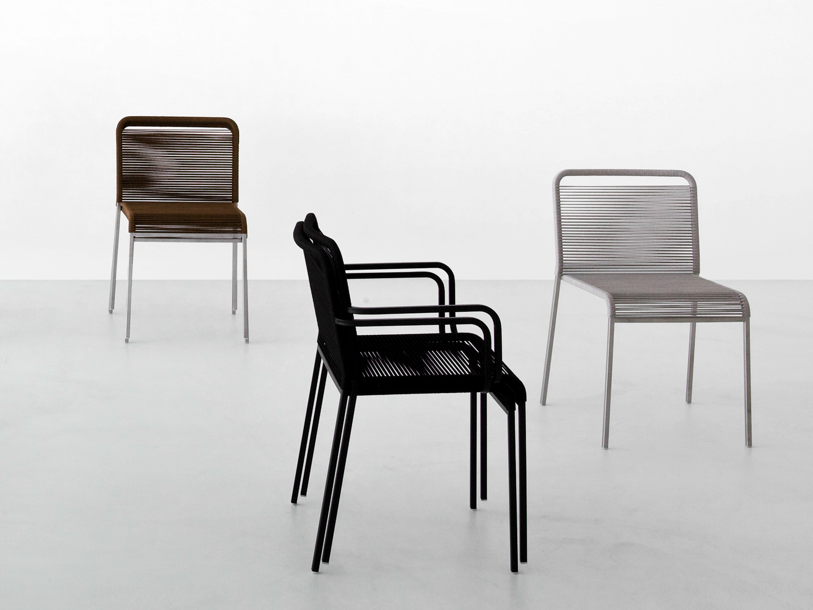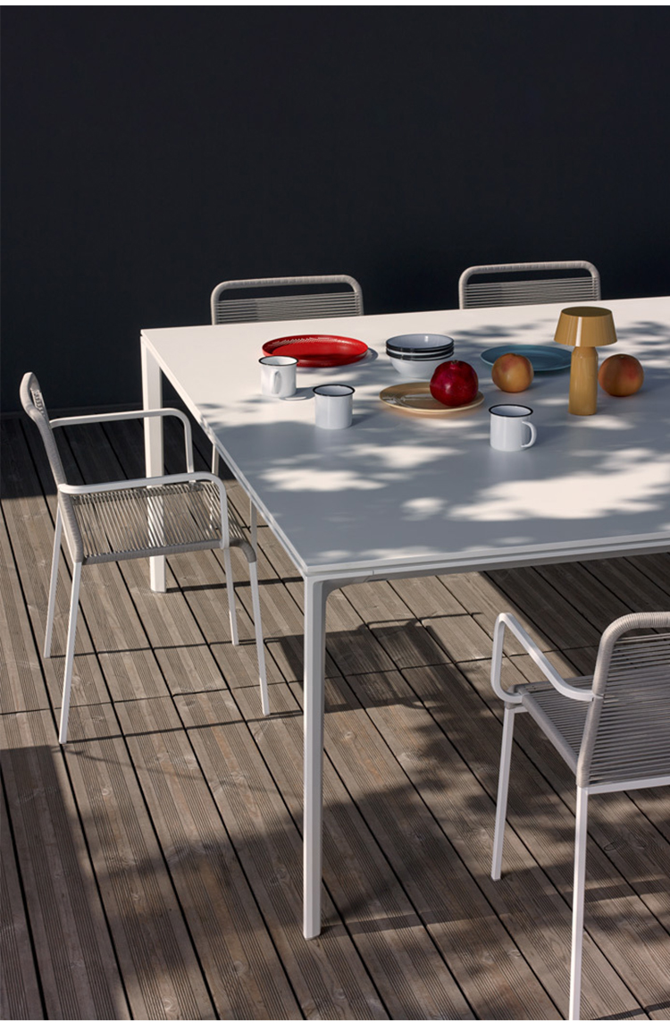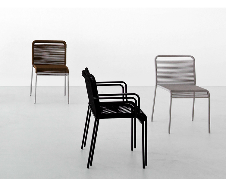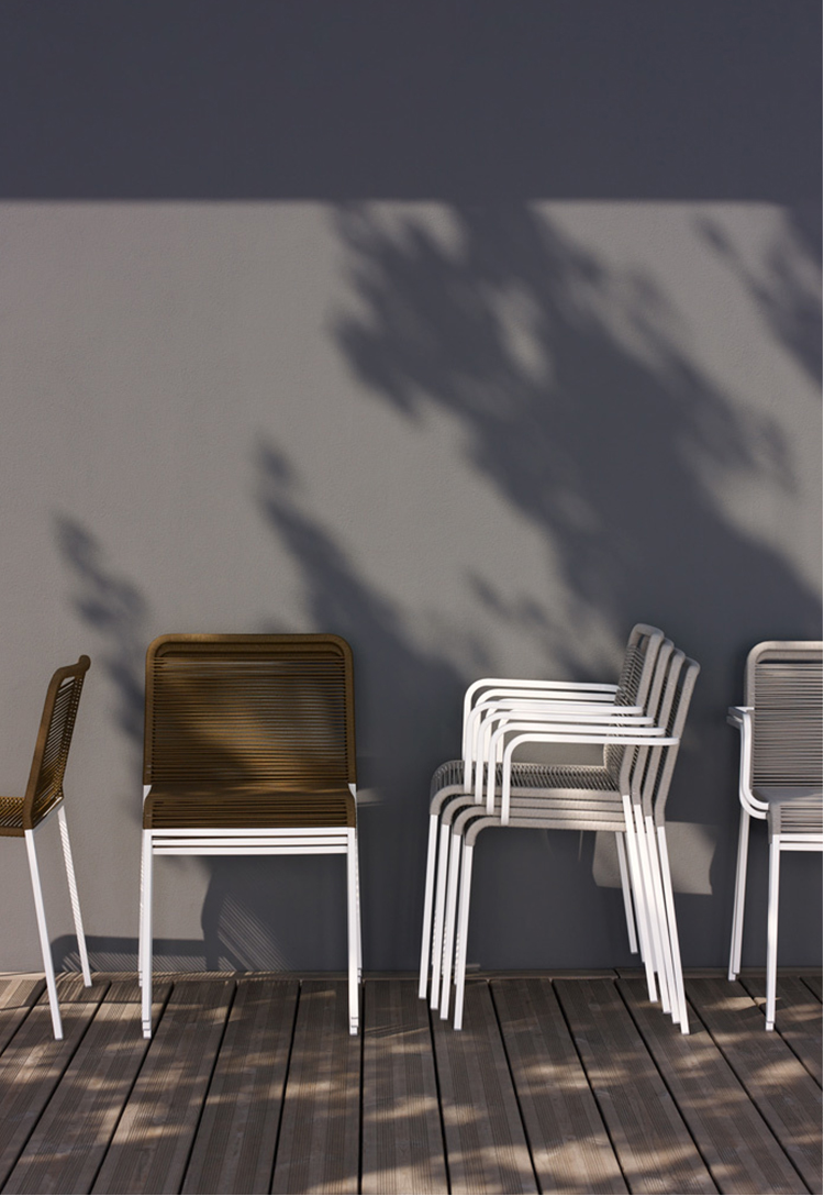 这把椅子不仅让人想起它的名字中空气的轻盈,而且在它的基本设计和它的材料的重量减少。理想的户外使用和完美的任何自然环境,这把椅子结合了一个强大的不锈钢框架与最佳的适应性周围的绳索周围的靠背和它的大方形座椅。这把椅子,带扶手的版本和凳子版本都是堆叠的。在视野开阔的地方,你可以找到ARIA。