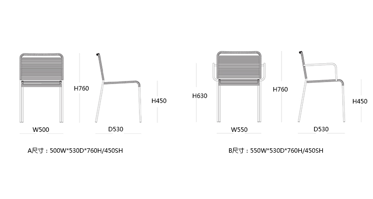 ARIA 户外椅/餐椅 系列尺寸/示意图
