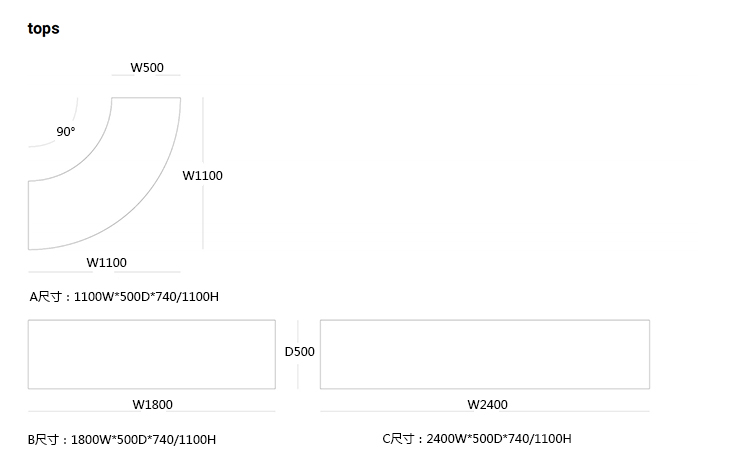 C:2400W*500D*740/1100H -