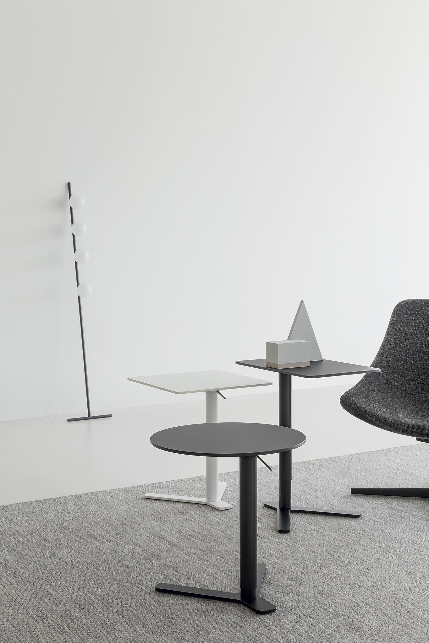 回顾胜利的标志,YO桌是成功的,因为它的多功能性,满足所有的需要作为一个顶部的工作和放松空间。由于它的偏离中心的底部和它的Y形腿,桌面,以各种几何形状,完美地对齐扶手椅和沙发。高度可调,它就像一张小桌子一样方便.