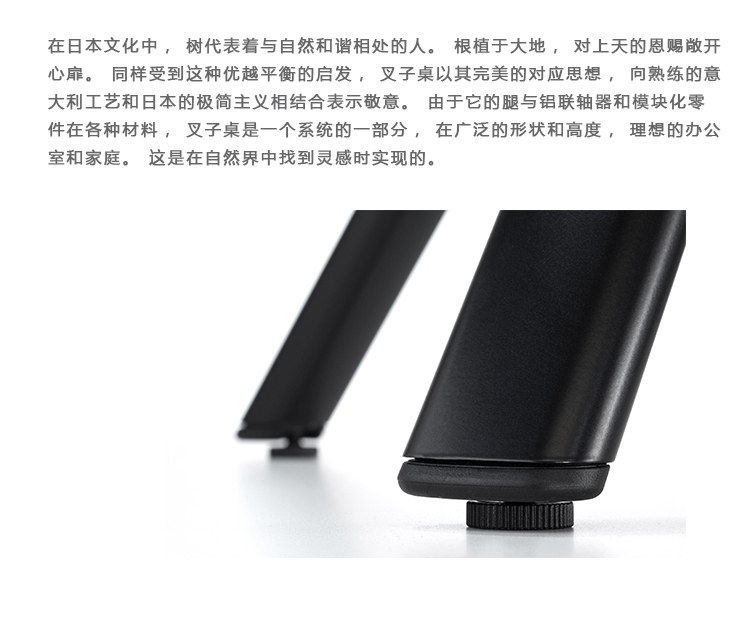 在日本文化中,树代表着与自然和谐相处的人。根植于大地,对上天的恩赐敞开心扉。同样受到这种优越平衡的启发,叉子桌以其完美的对应思想,向熟练的意大利工艺和日本的极简主义相结合表示敬意。由于它的腿与铝联轴器和模块化零件在各种材料,叉子桌是一个系统的一部分,在广泛的形状和高度,理想的办公室和家庭。这是在自然界中找到灵感时实现的。