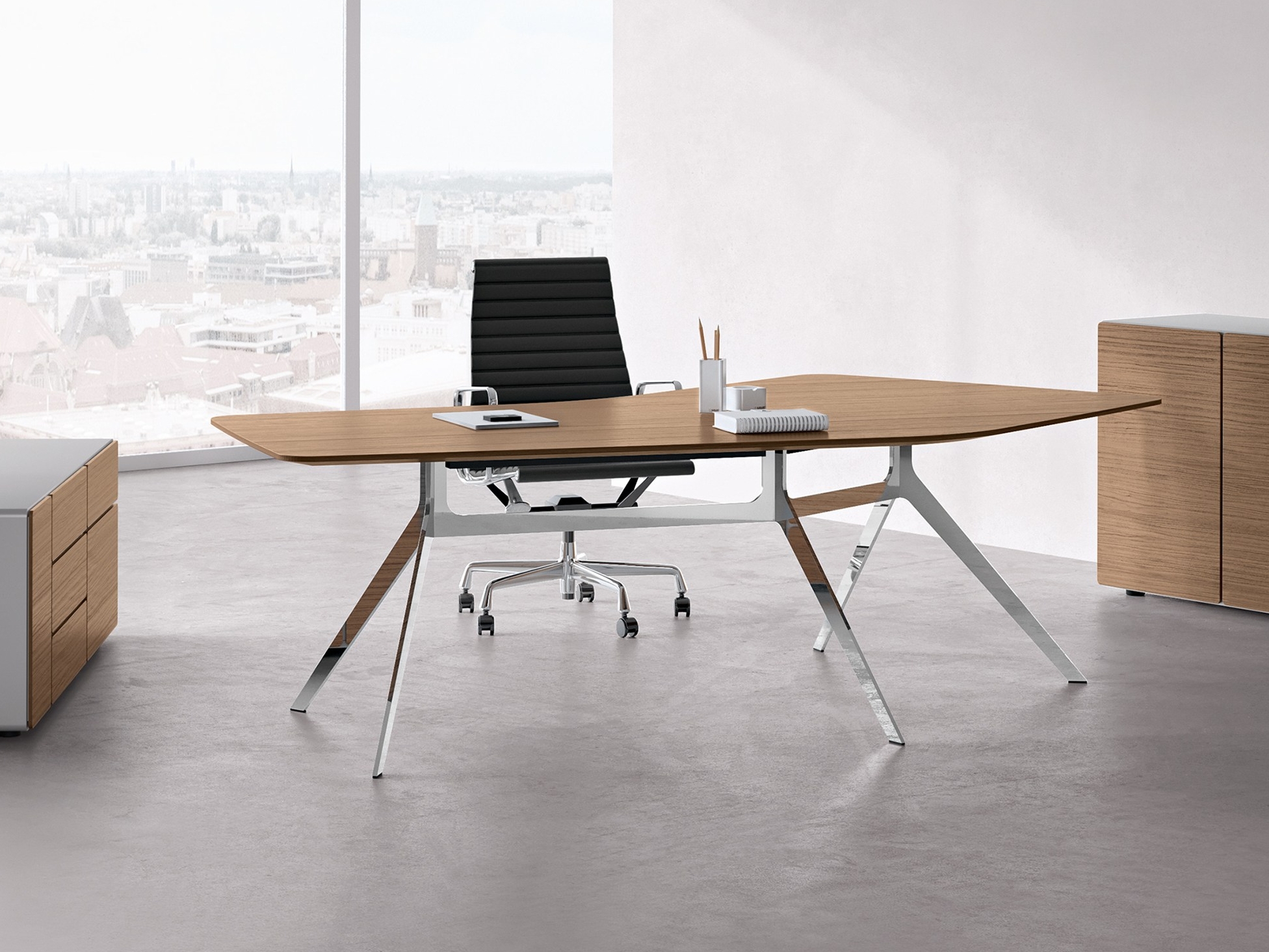 Star系列轻盈、纤薄,但却优雅而坚固。充满个性的外观设计使得办公空间焕然一新。极具特色的桌脚辅以亮光铬锐意十足。