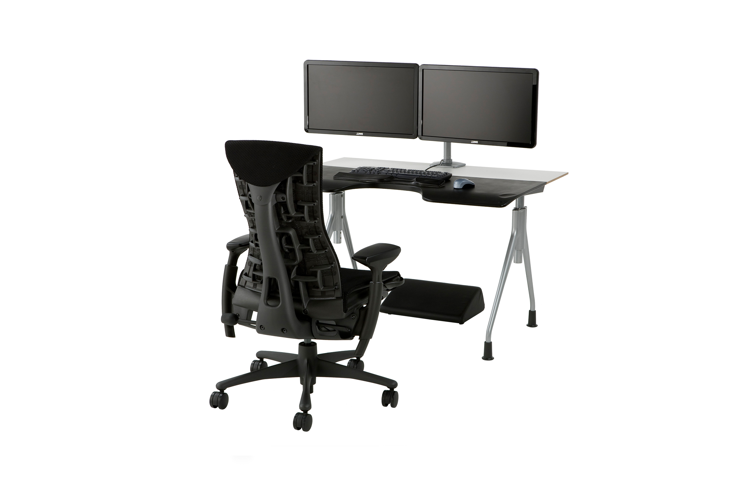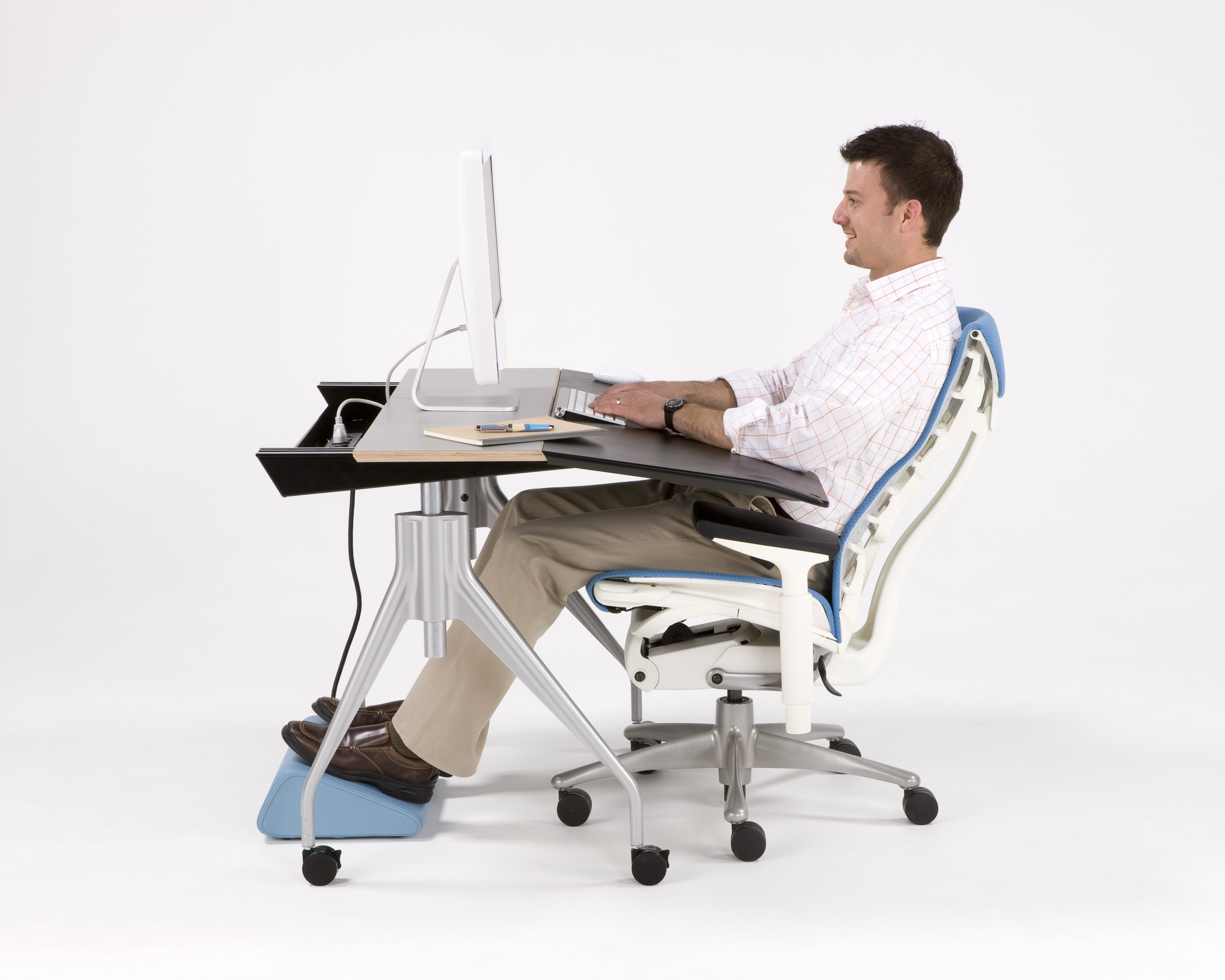 Embody的概念从一个业界未能克服的问题开始:人与科技之间缺少的实质和谐。我们身体的构造本来就是需要活动的。可现今人们长时间使用电子设备,手指以外的部位少有活动,而致使身体僵硬和疲惫。透过Embody,设计师Bill Stumpf和Jeff Weber着手解决这一问题。