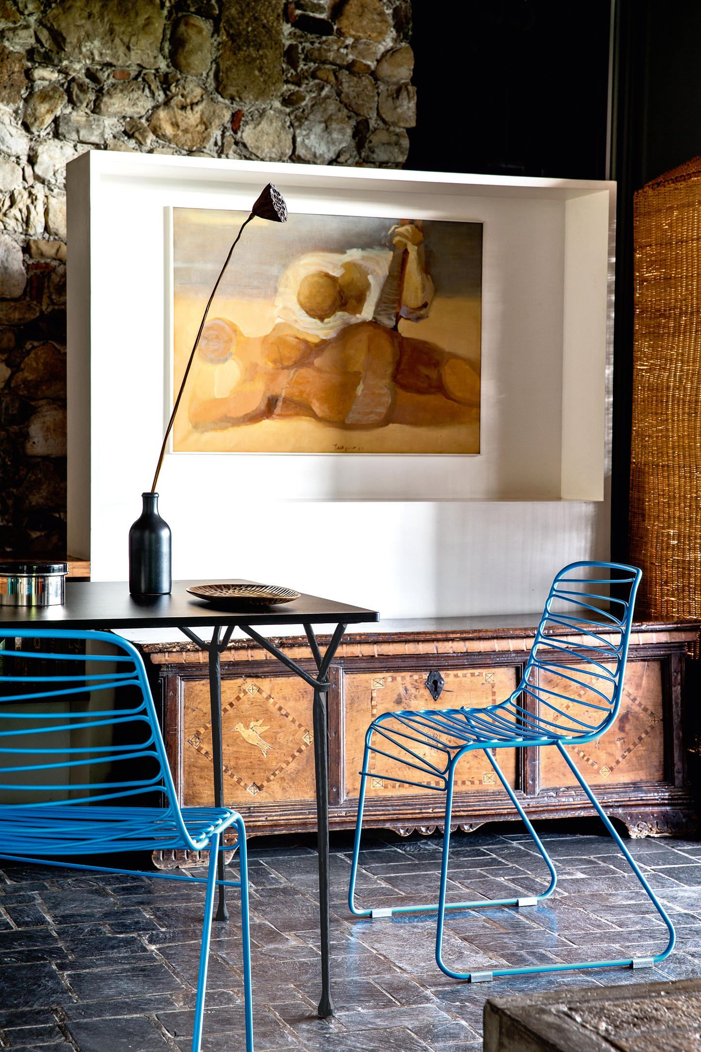 罗南补充说:“这个项目的微妙之处在于,它使用了这些暴力、强烈的手势,同时,材料的最小使用和它们的巧妙手法使它变得微妙。”几何形状的基座具有系统性,可以承受不同高度的压力,可以承受不同大小、不同形状和不同材质的顶部。