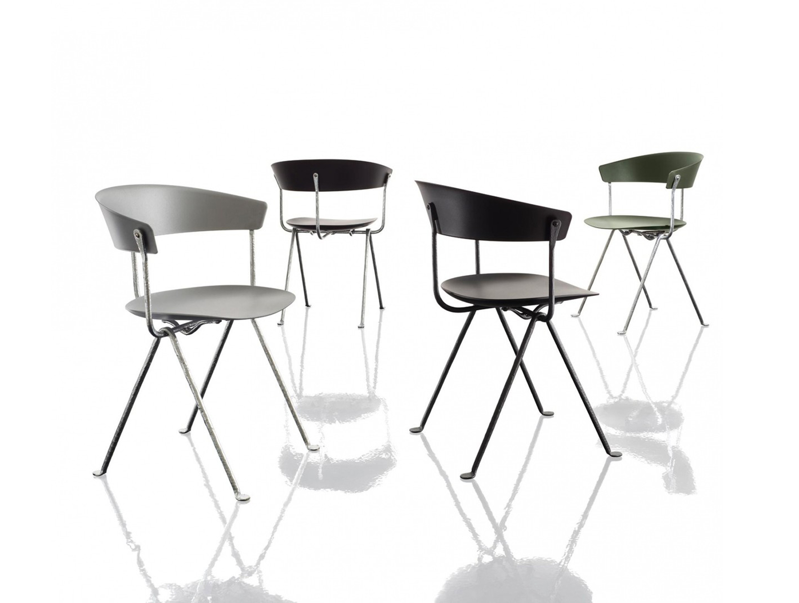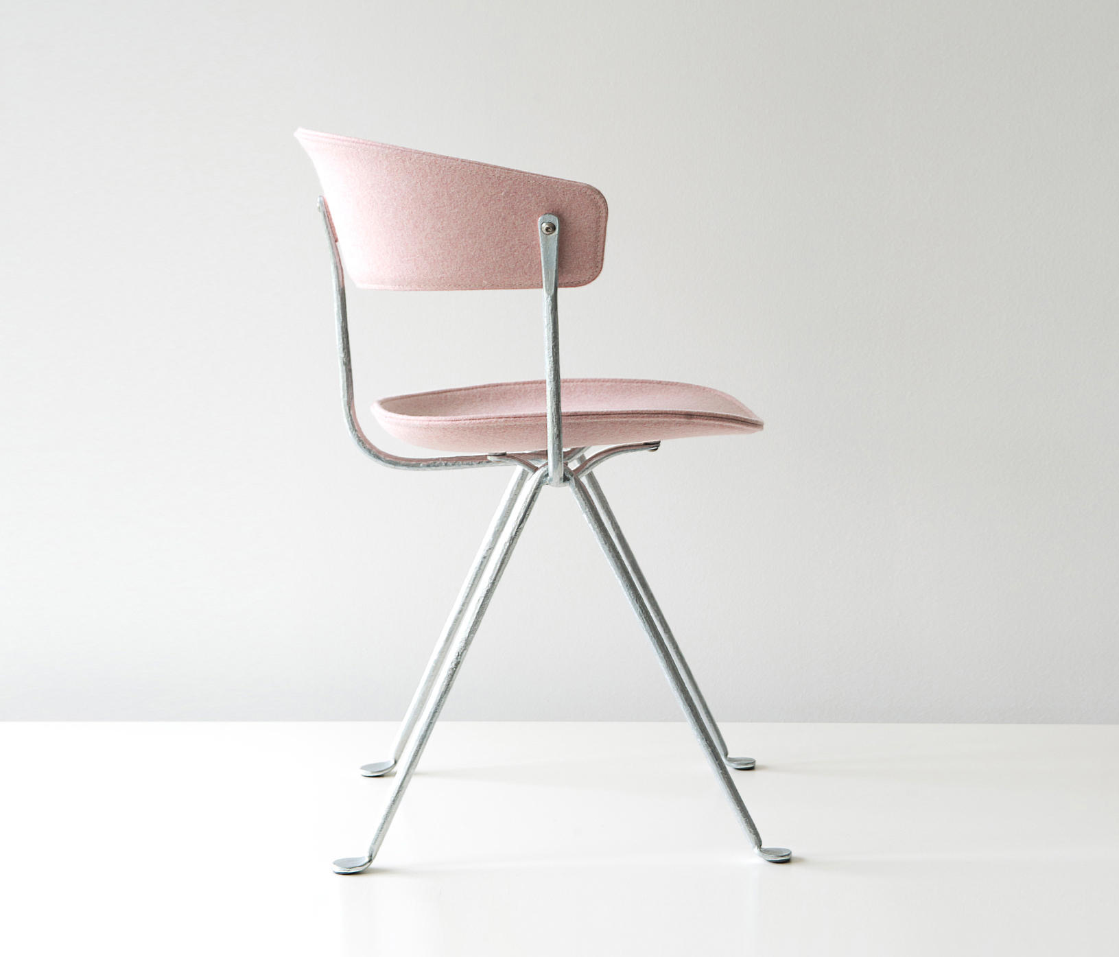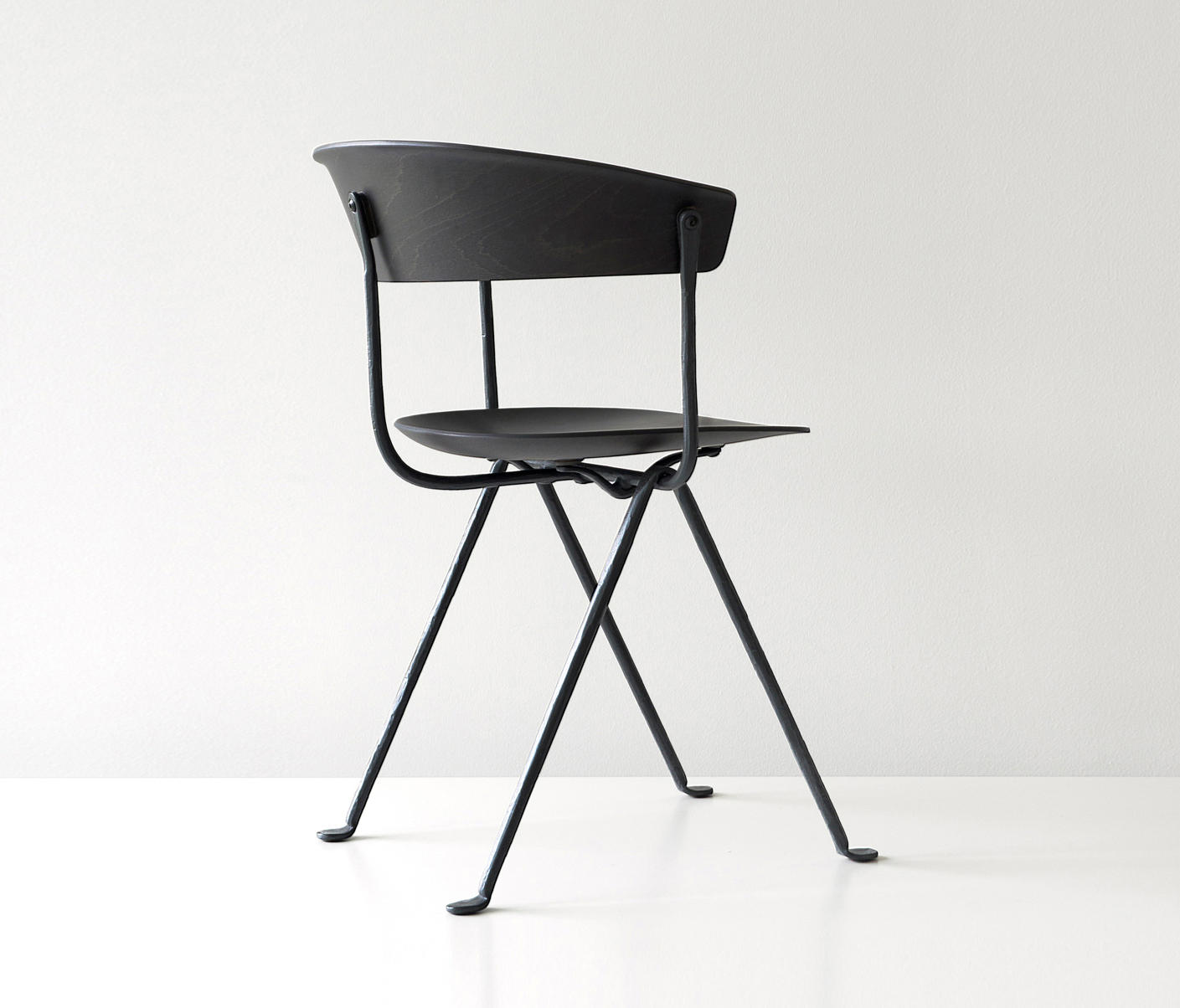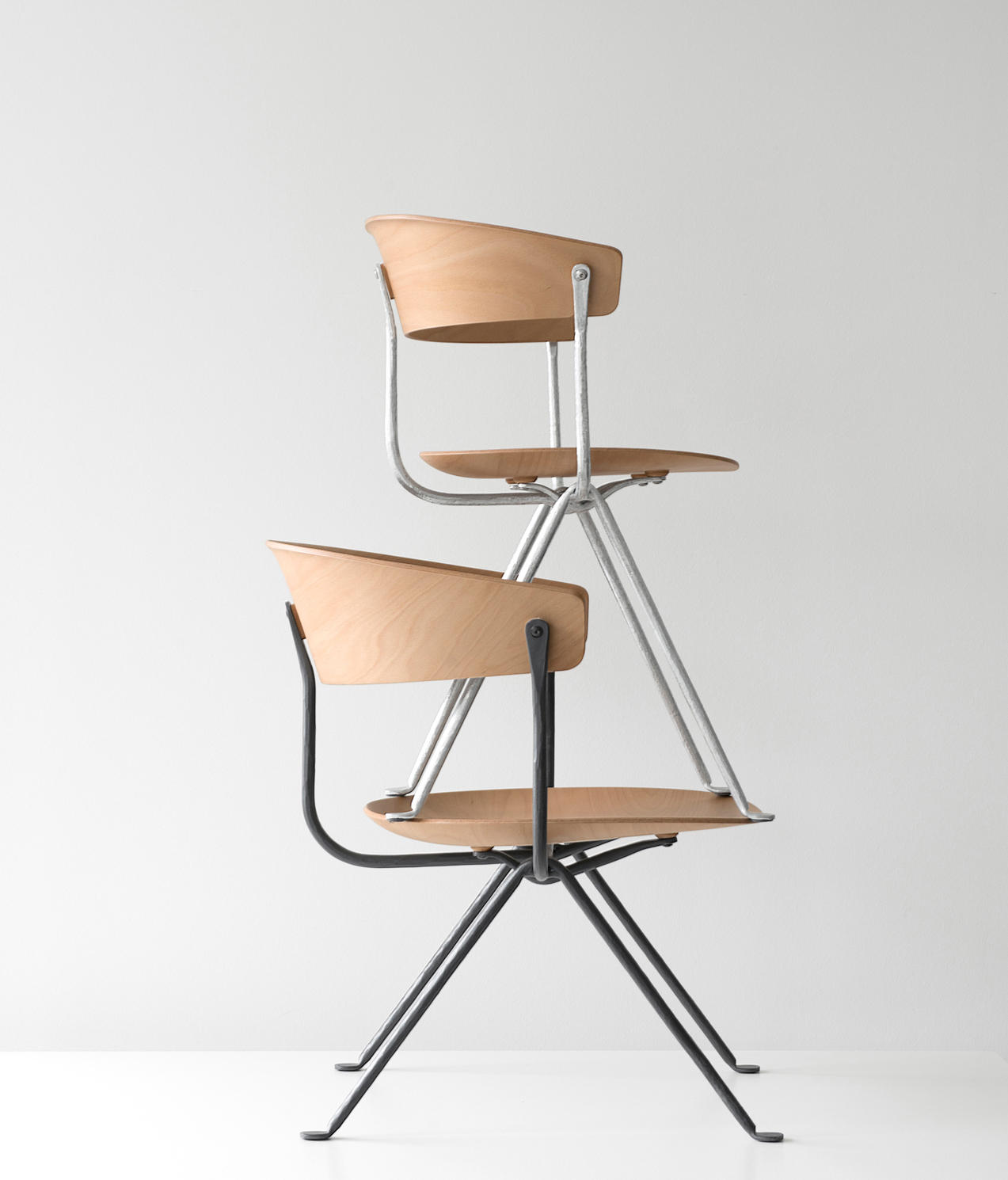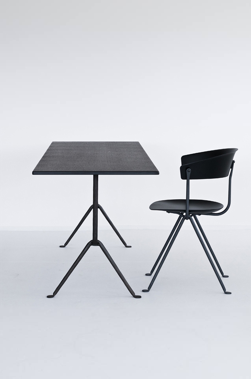 设计师Ronan和Erwan Bouroullec用办公椅庆祝这一古老的滴锻铁工艺。修长的腿是由锻造的铁条制成的,这些铁条在需要的时候被加热、弯曲、挤压或连接。一个轻微弯曲的座位和由聚丙烯或皮革制成的靠背被设置在顶部,创造了一个最小的设计来庆祝锤铁固有的不规则。