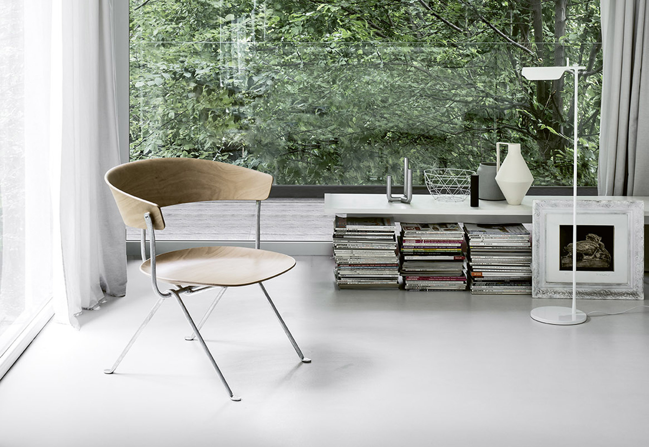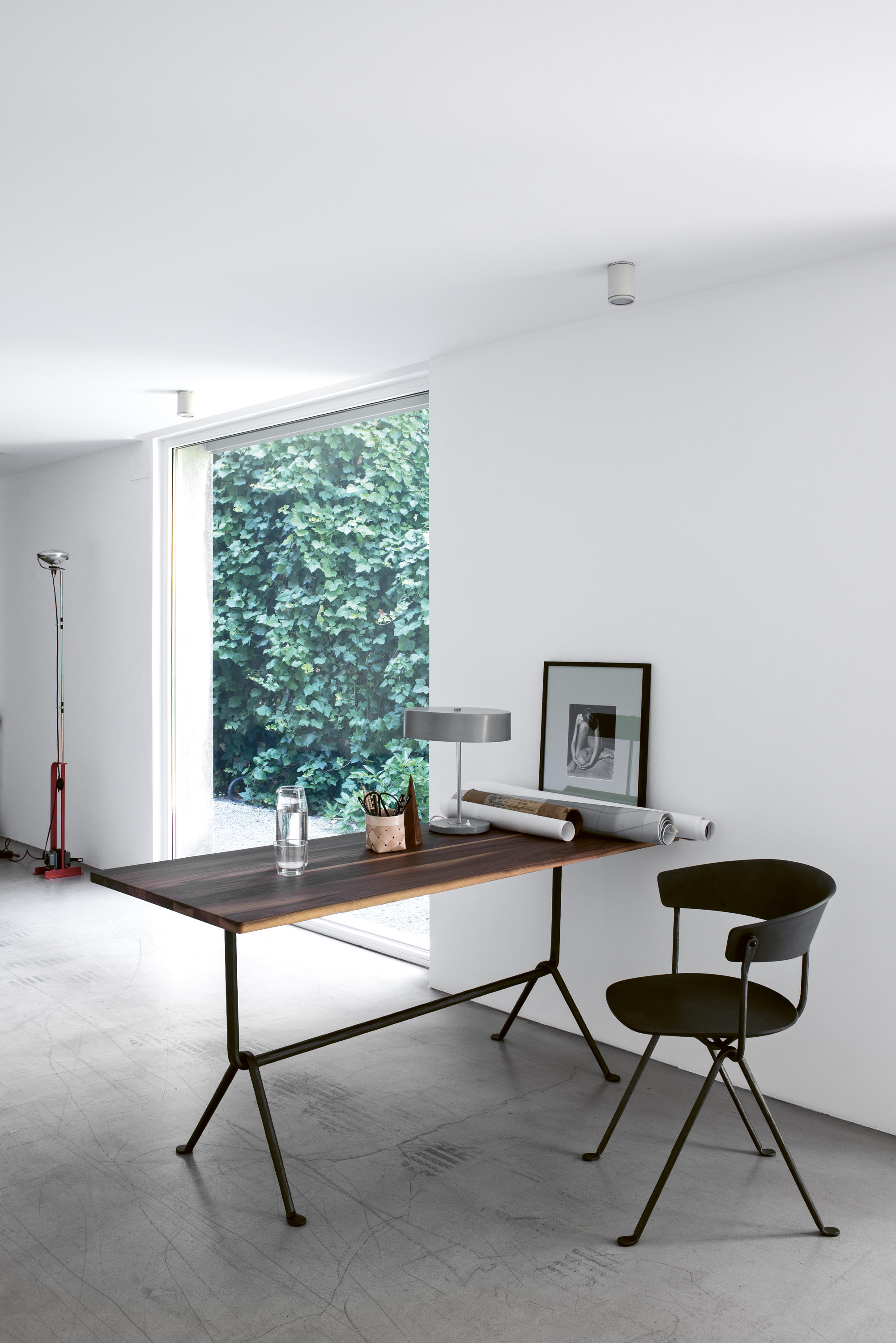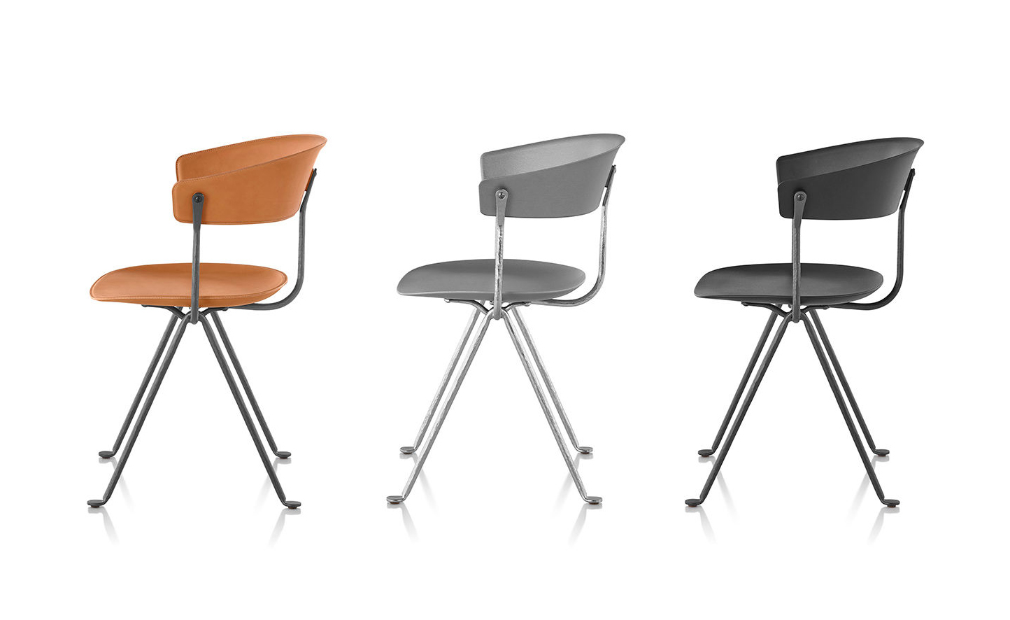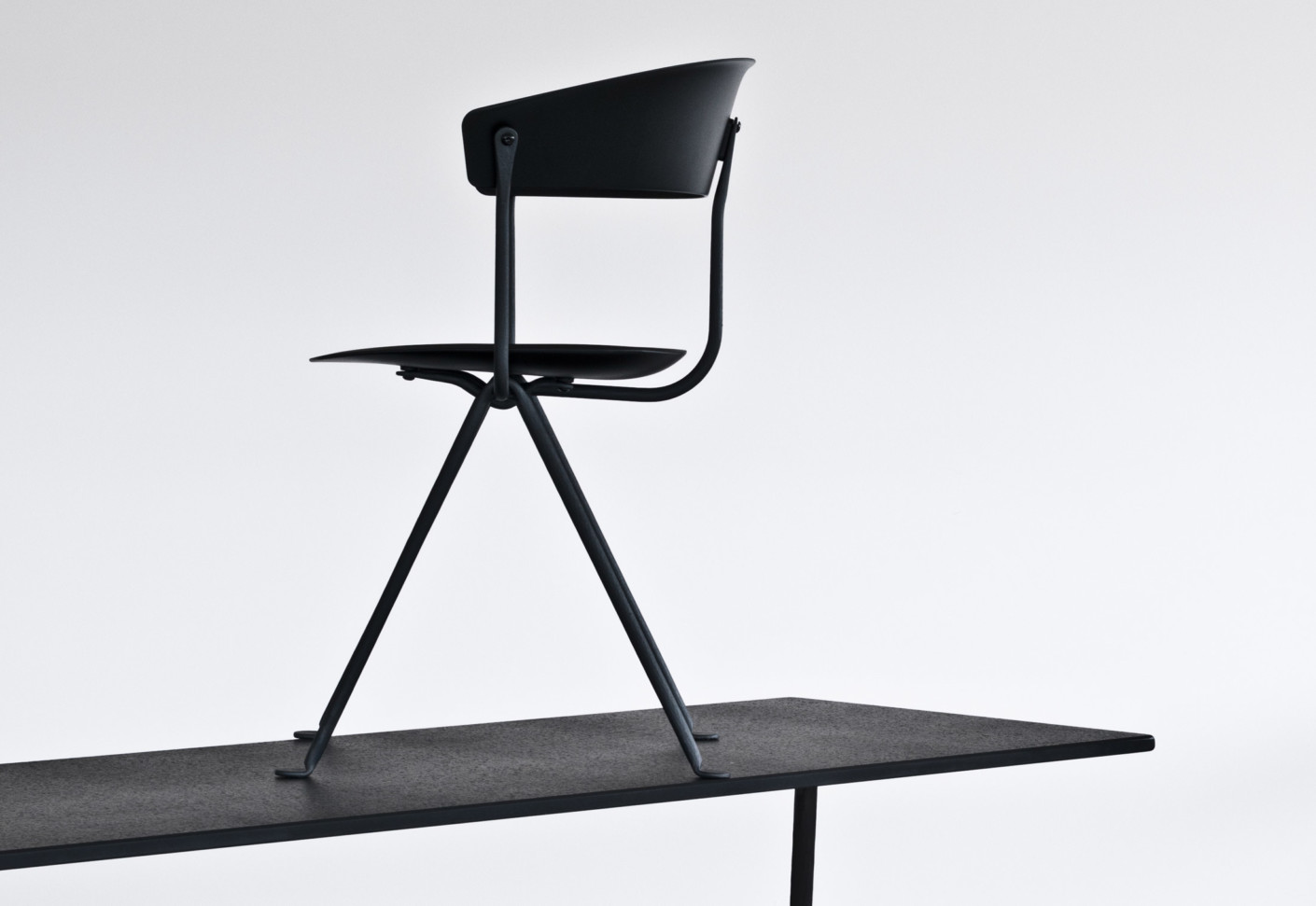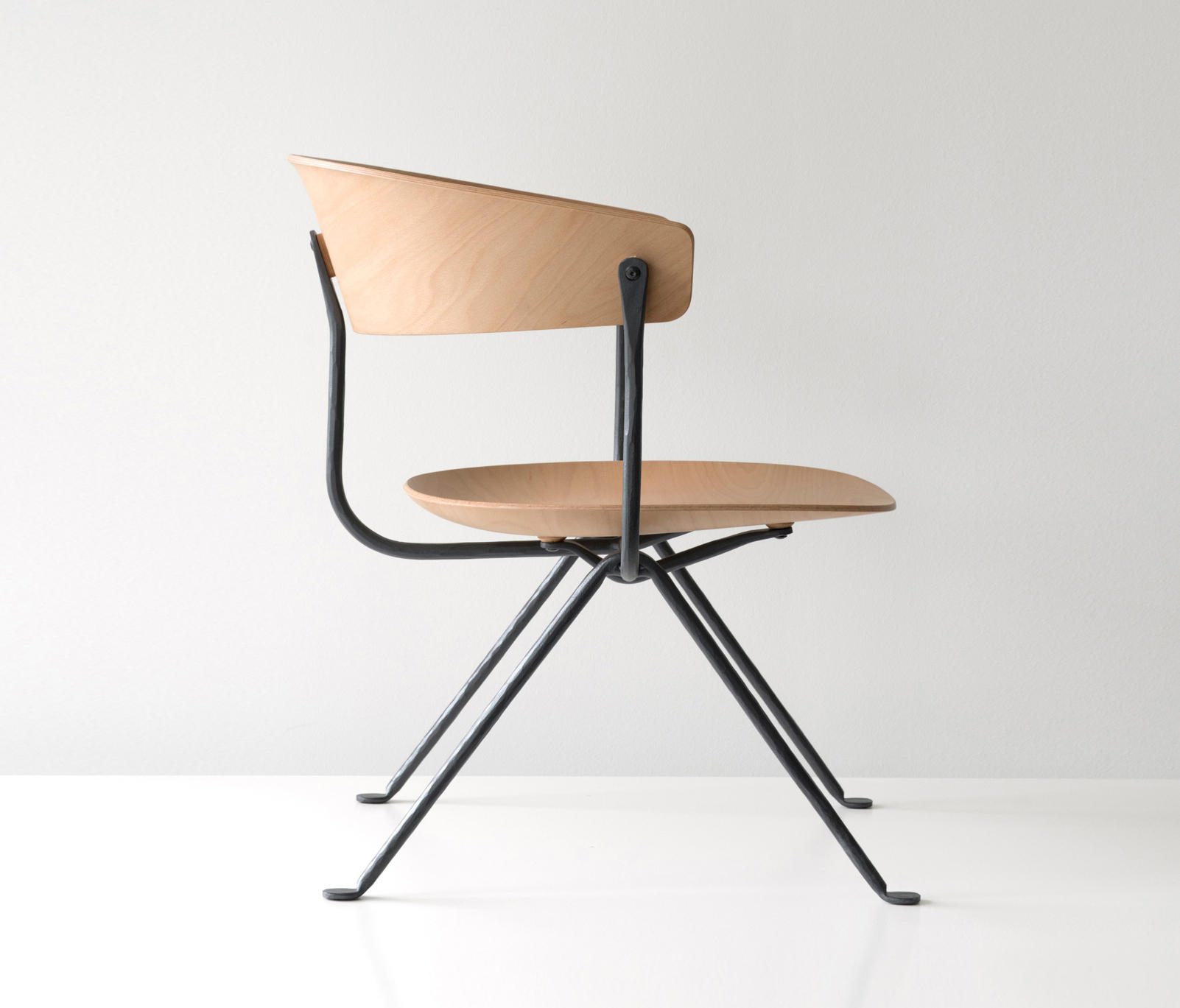 设计师Ronan和Erwan Bouroullec用办公椅庆祝这一古老的滴锻铁工艺。修长的腿是由锻造的铁条制成的,这些铁条在需要的时候被加热、弯曲、挤压或连接。一个轻微弯曲的座位和由聚丙烯或皮革制成的靠背被设置在顶部,创造了一个最小的设计来庆祝锤铁固有的不规则。
