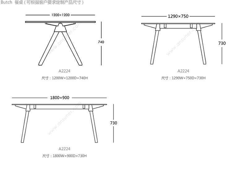 bunch 餐桌 系列尺寸/示意图