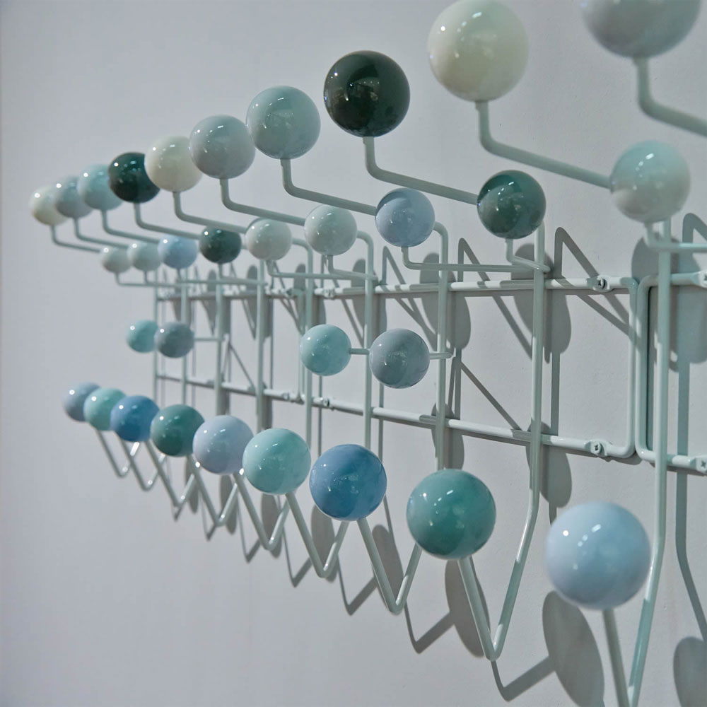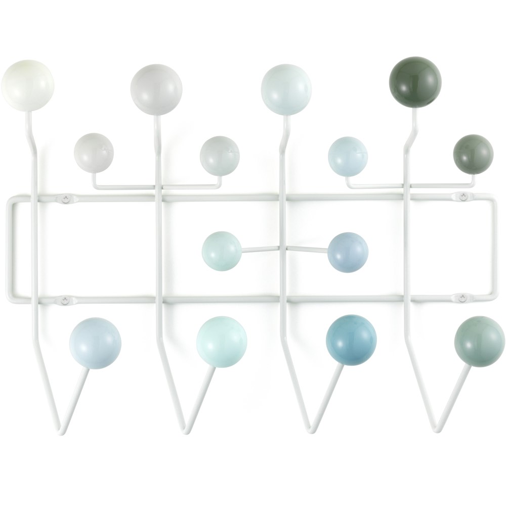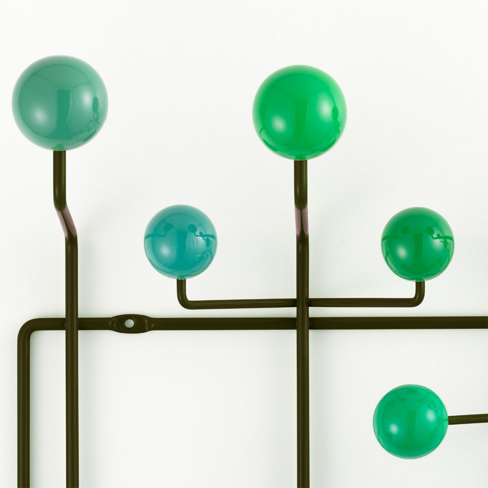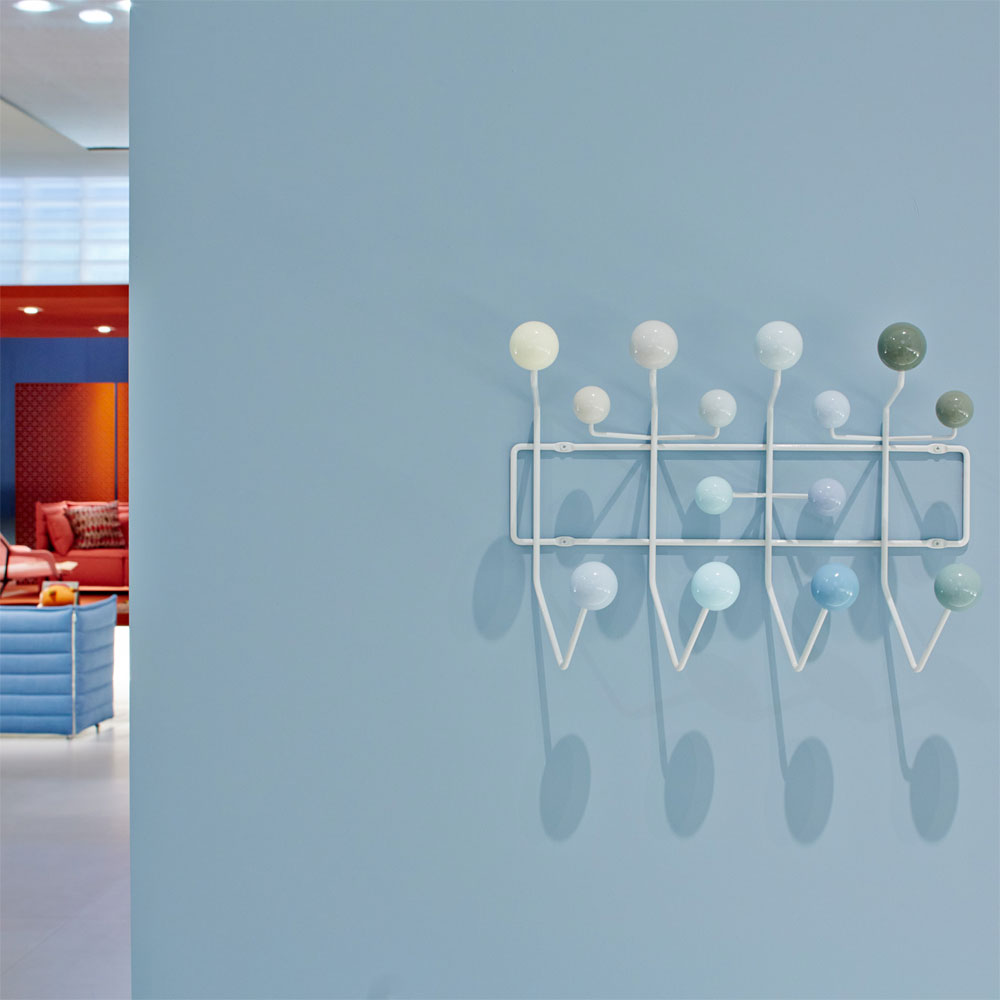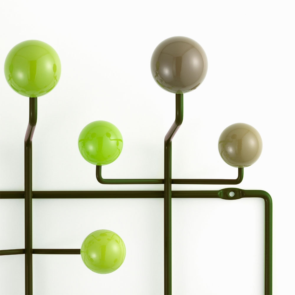 查尔斯和雷·埃姆斯把他们的衣架全部挂起来,把日常的衣架提升到一种创造性和趣味性。最初是用多色的挂钩和白色的金属线框制作而成,从那以后,它的材质和配色都更加忠实于原作的复杂和玩味。