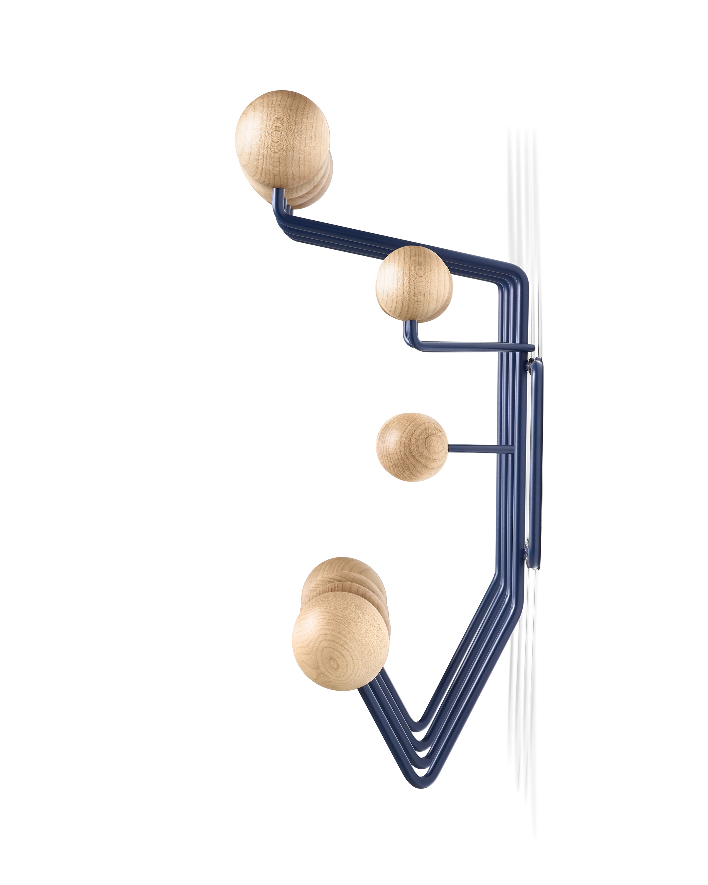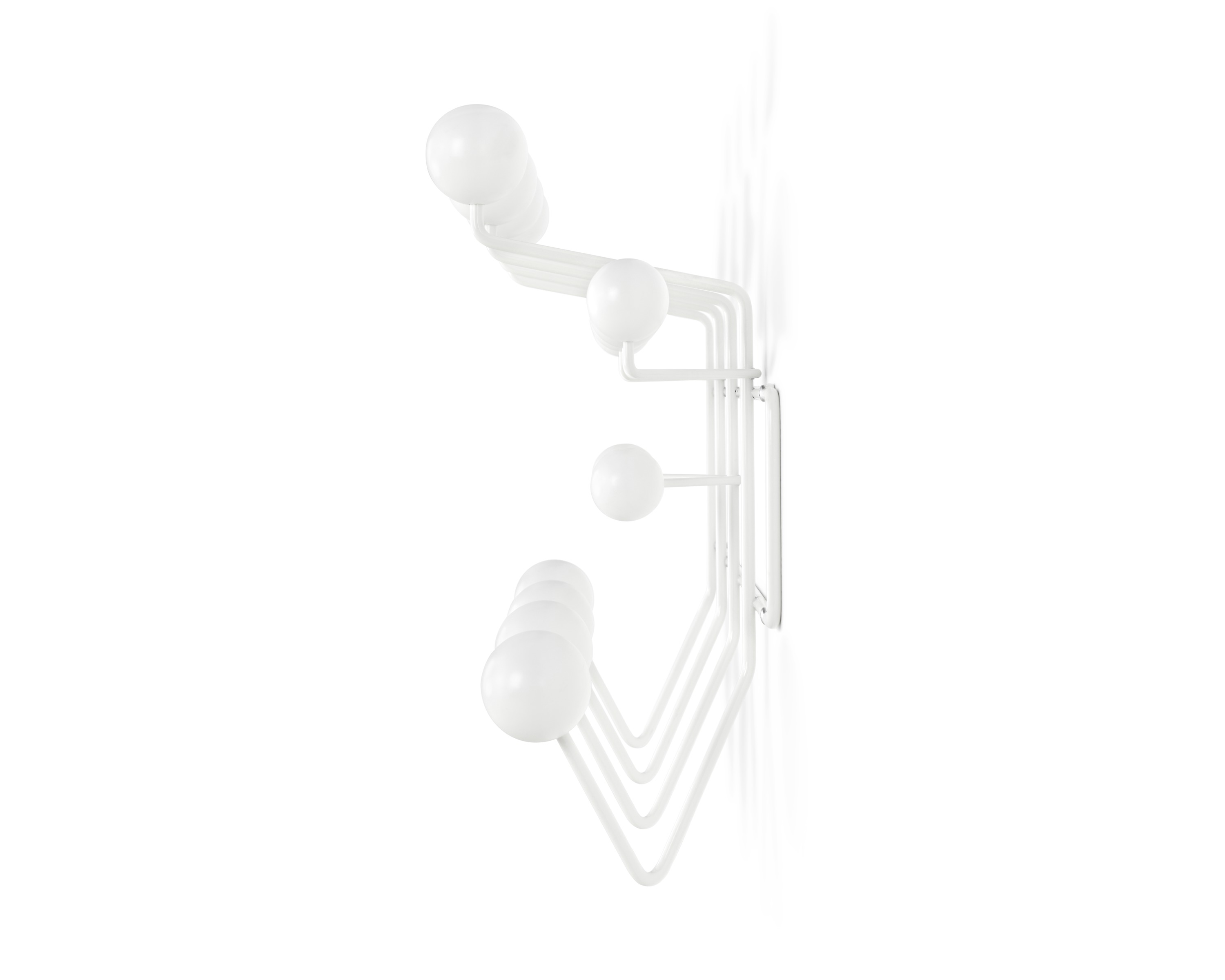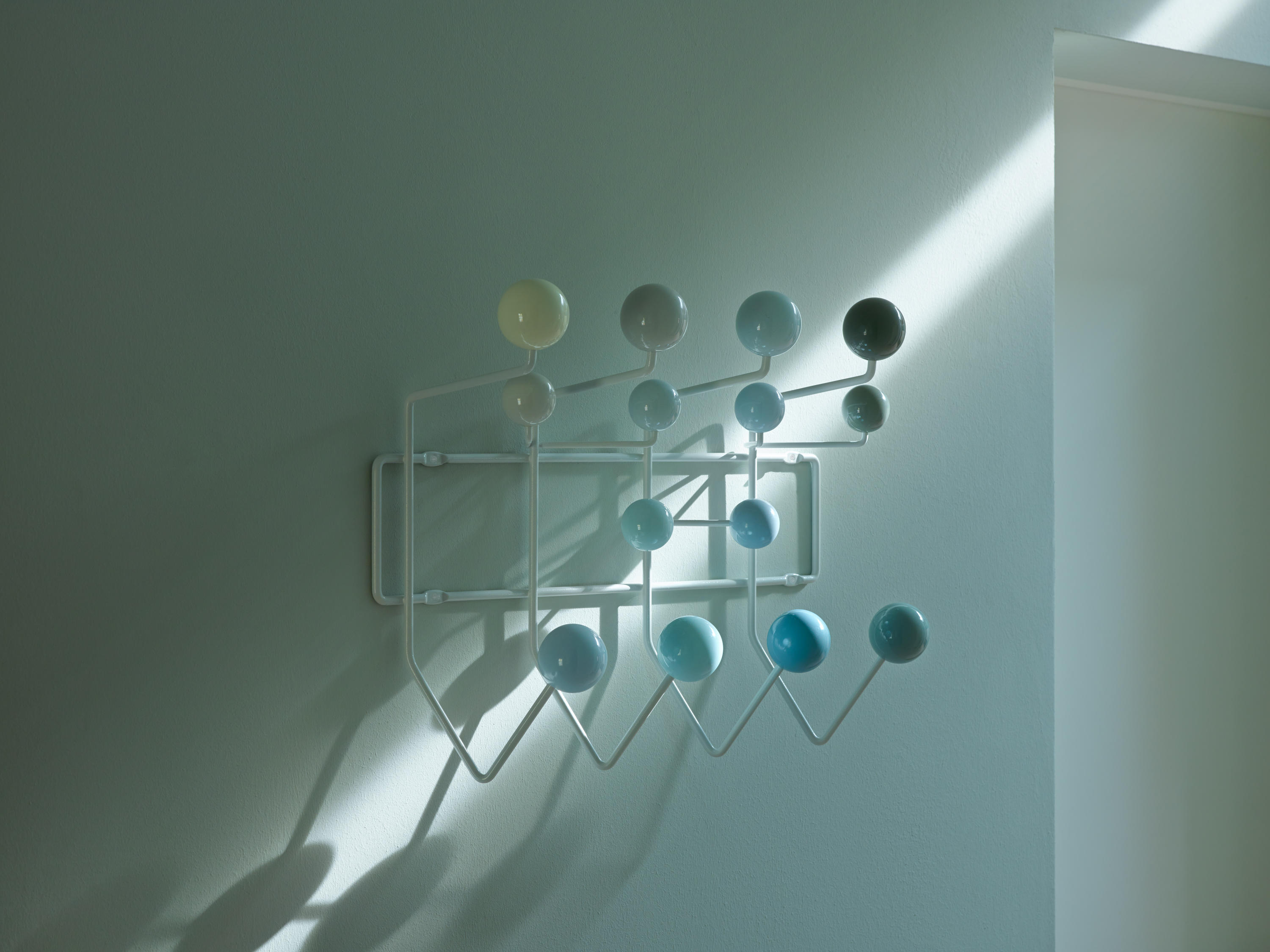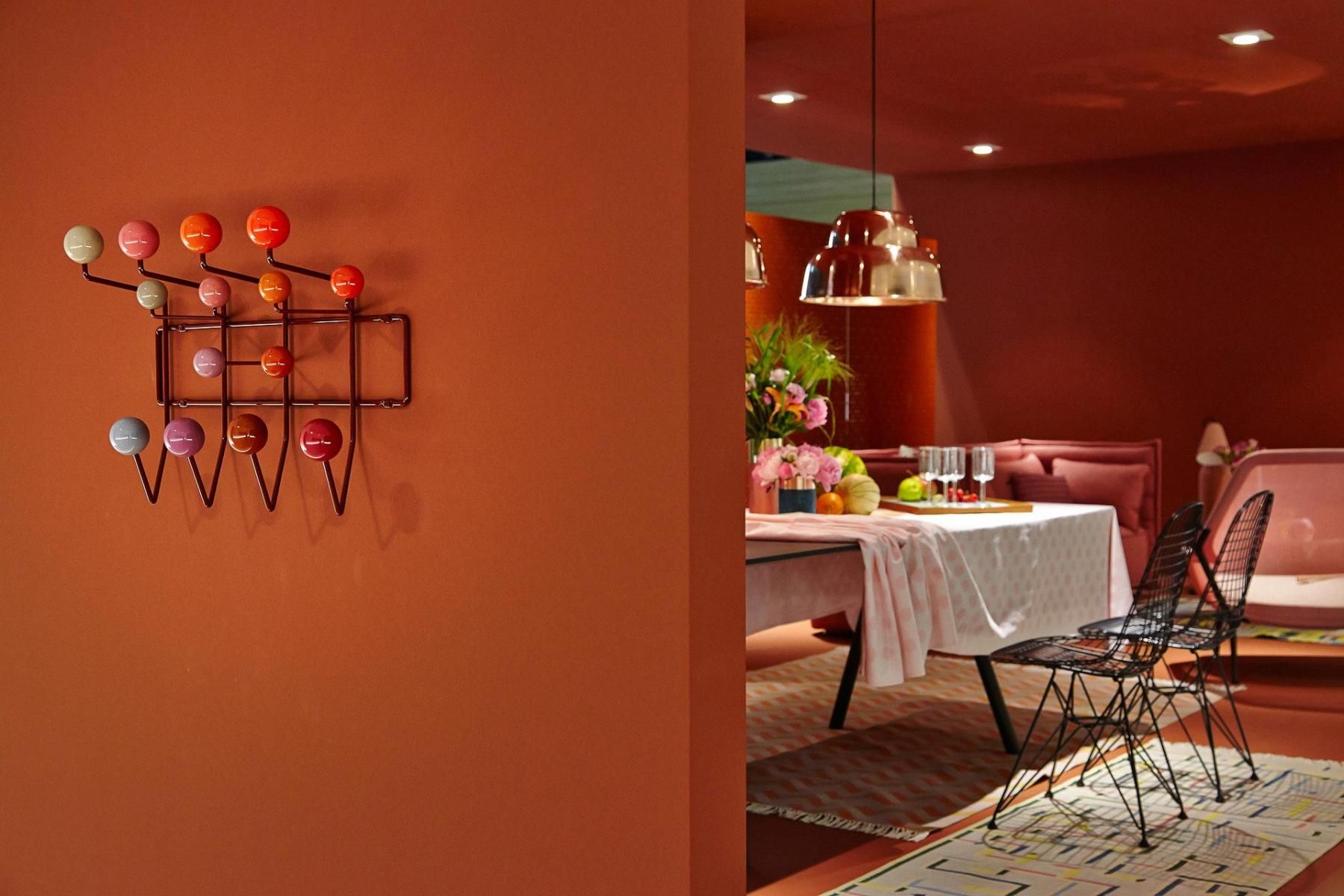 查尔斯和雷·埃姆斯把他们的衣架全部挂起来,把日常的衣架提升到一种创造性和趣味性。最初是用多色的挂钩和白色的金属线框制作而成,从那以后,它的材质和配色都更加忠实于原作的复杂和玩味。