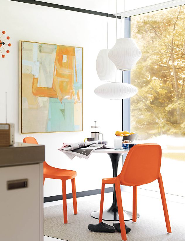 在基本的球状外形基础上稍作改变,气泡灯系列是George Nelson的设计中辨识度最高、最经典的系列之一。Nelson Pear Bubble Pendant梨形气泡吊灯悠然悬挂在头顶,向中心部位发散耀眼的光芒。本款吊灯有两种尺寸:小号和中号。1952年,美国市场引进了一款瑞典吊灯系列产品,George Nelson对此十分心仪,想要给自己的办公室买一套。那盏灯的价格在当时来讲实在过于高昂,让人望而却步,但却让他萌生出自行设计的念头来。其结果是一系列灯具的面世,这些灯具以一些自然的球状外形为特色,比如圆圆的苹果、加长的雪茄和造型优美的梨等。