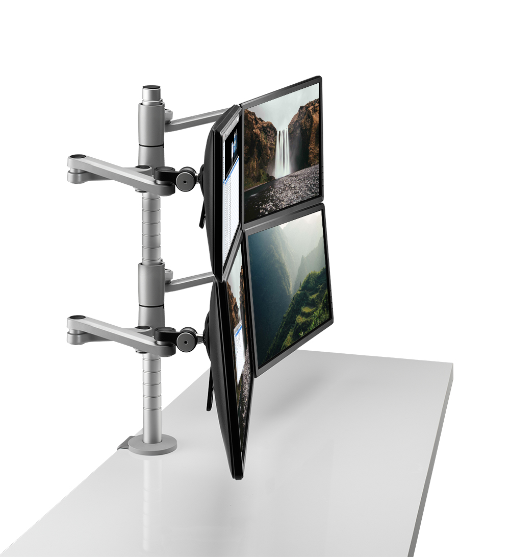 Daisyone多显示器臂非常适合具有轻质屏幕的高密度环境。 当您准备好重新配置时,快速释放控制使安装和移除变得快速而简单。