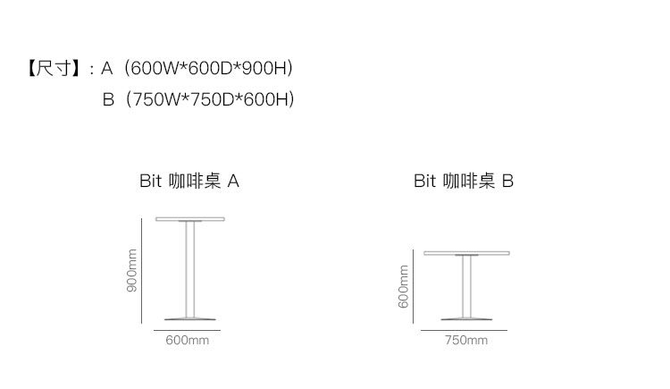 Bit 咖啡桌 系列尺寸/示意图