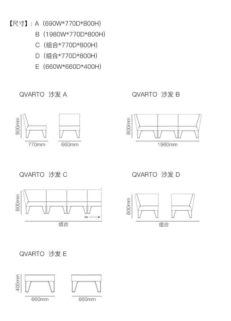 QVARTO 沙发 系列尺寸/示意图