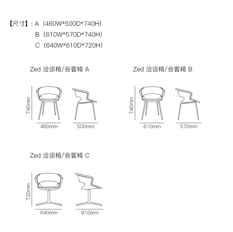 Zed 洽谈椅/会客椅 系列尺寸/示意图
