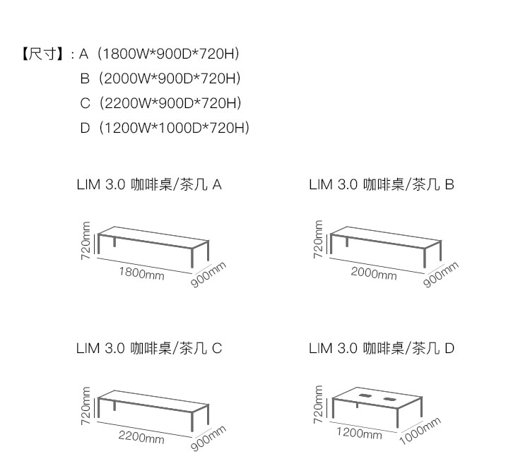 LIM 3.0 咖啡桌/茶几 系列尺寸/示意图