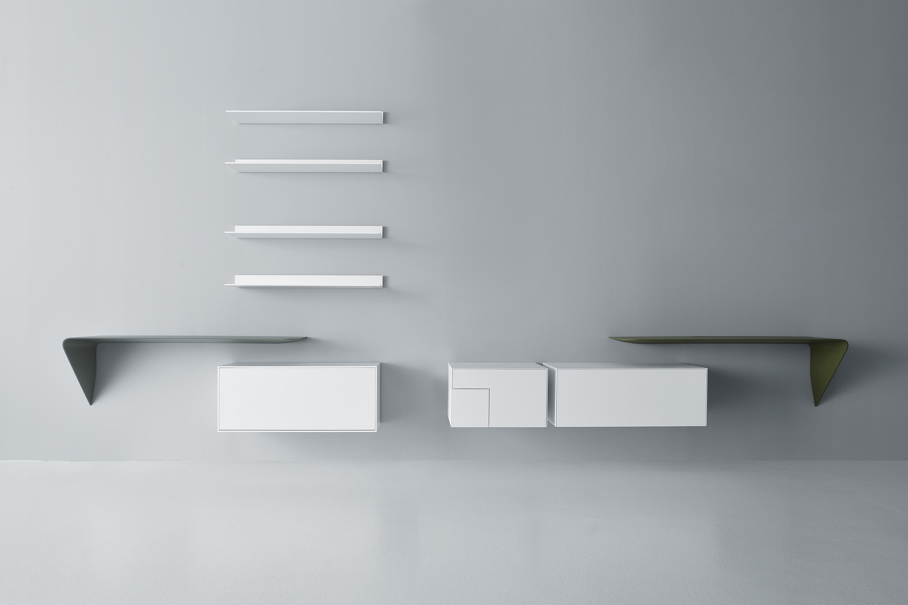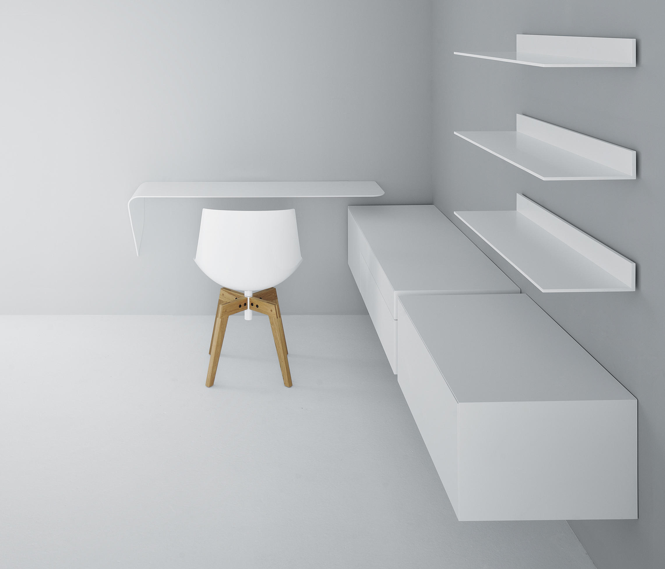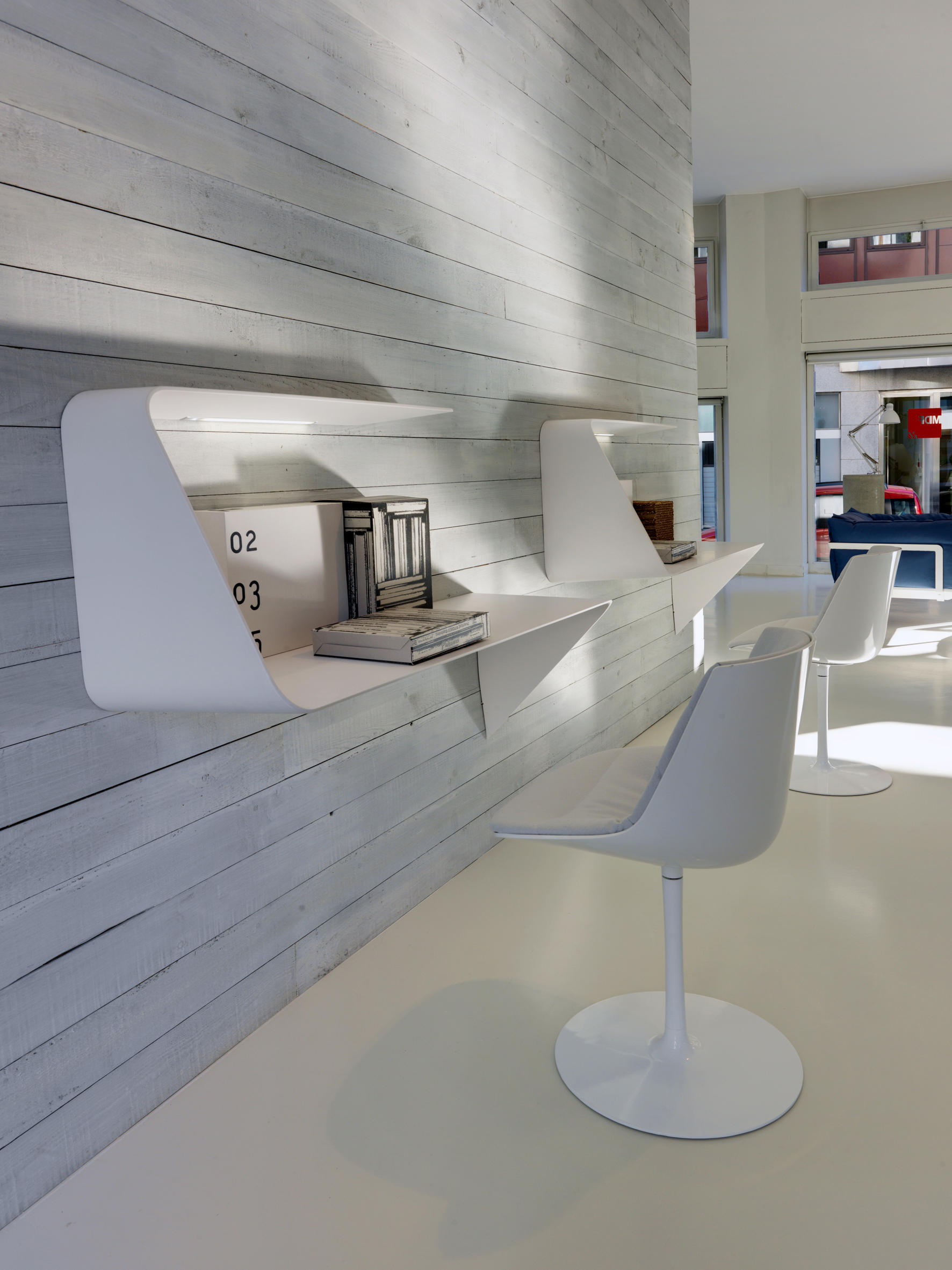 架子和/或壁挂式书桌。波浪形和渐缩的厚度为产品的设计和图像增添了强烈的视觉冲击。Mamba还配备了白色的HD LED。