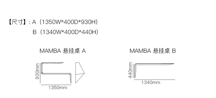 MAMBA 悬挂桌 系列尺寸/示意图