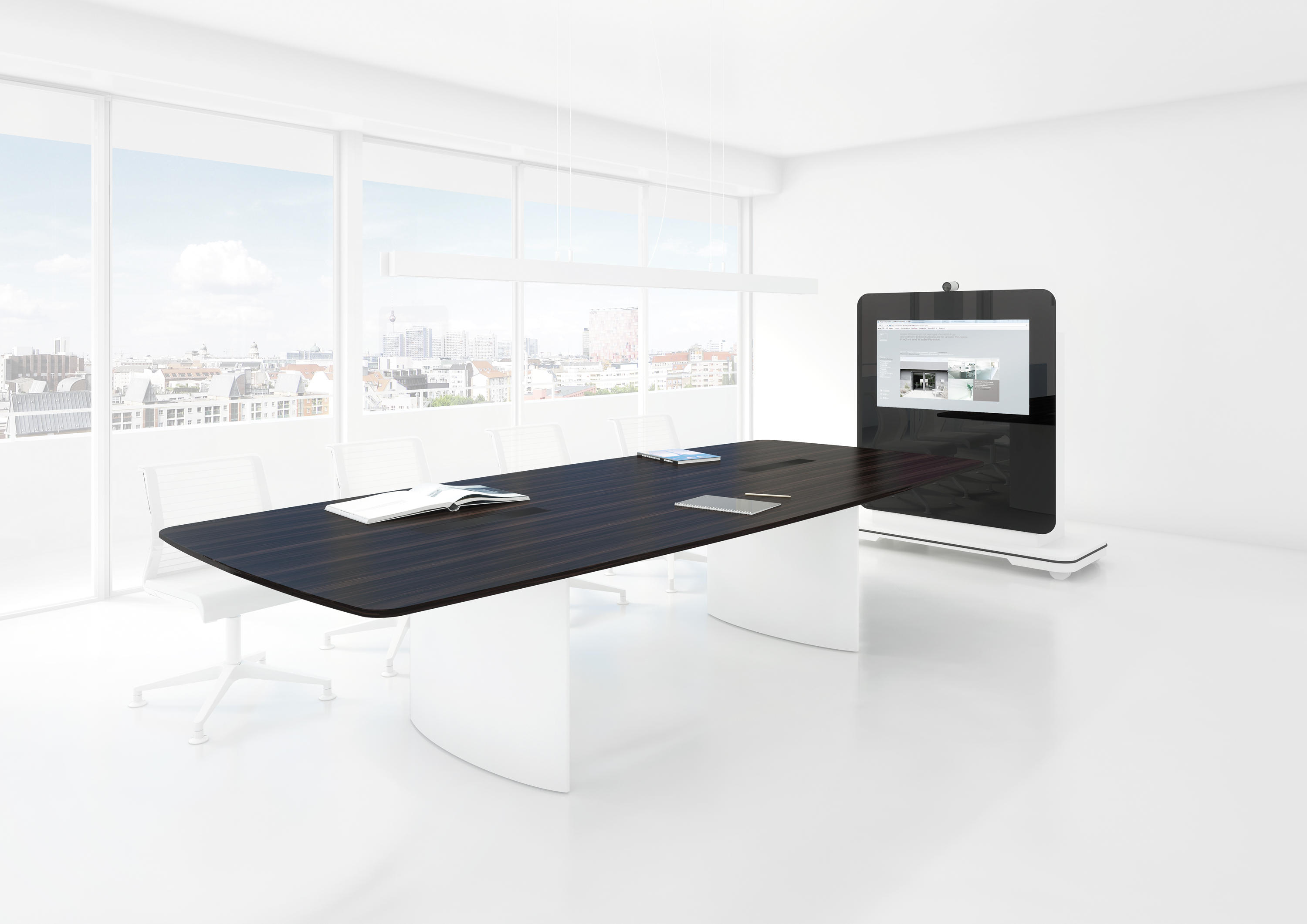 远程控制以及集成的控制面板,集成的55英寸显示,自由移动,白色或组合式——可选玻璃面板.