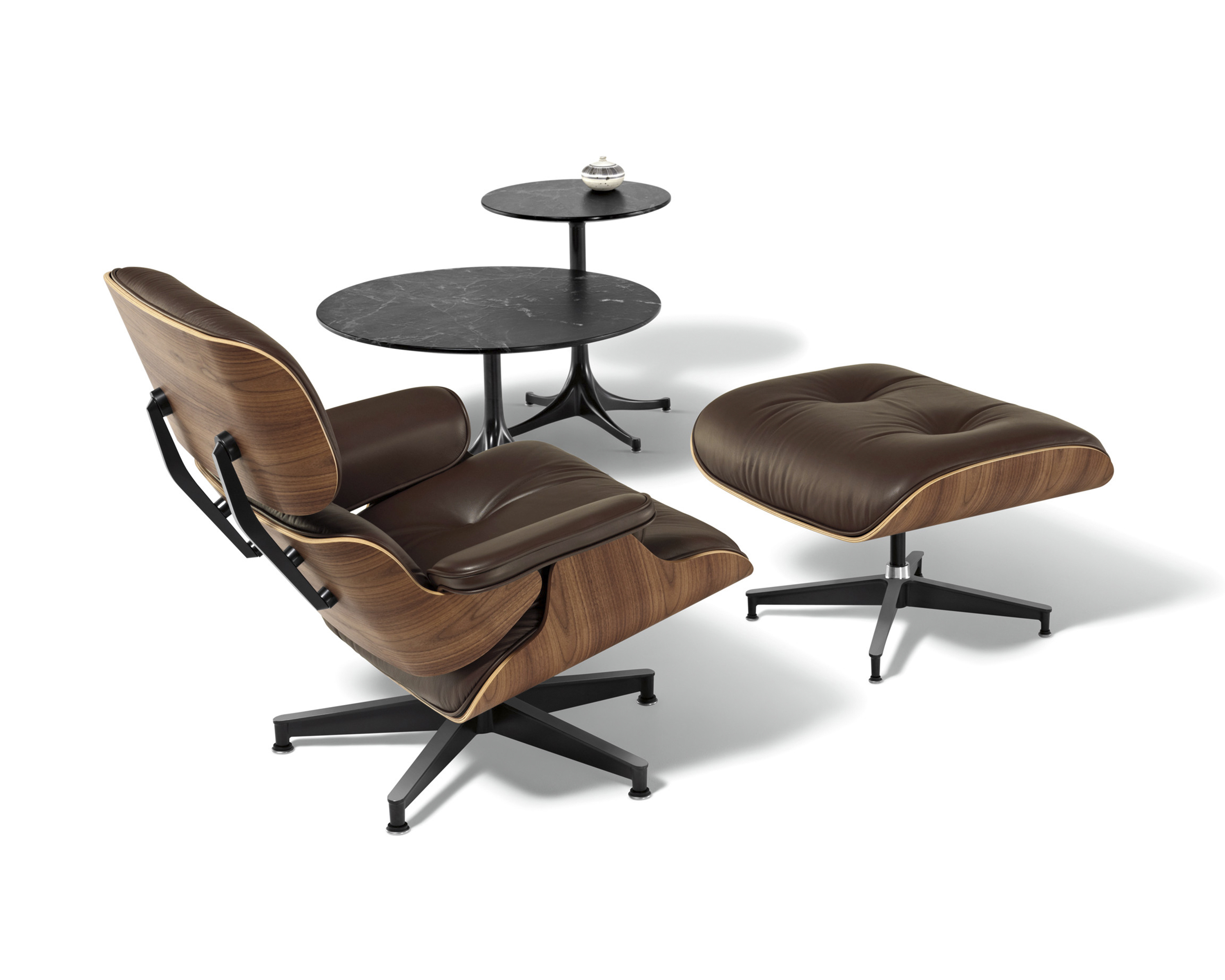 1956年知名由夫妻档设计师Charles & Ray Eames发表的lounge chair&Ottoman历经50多年的岁月,仍被视为现代家具史上最重要的经典设计家具之一,已经成为美国最重要的现代艺术博物馆MOMA的永久收藏品;椅子的压铸铝制部分则是以铝合金镀鉻,让整体视觉呈现轻盈興现代感.