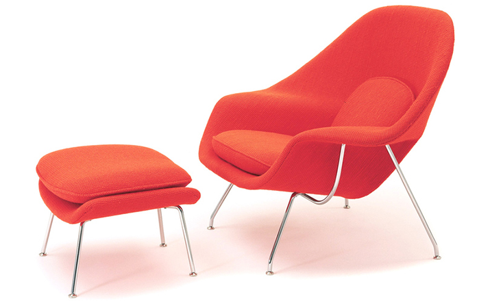 Womb Chair 的基本构造是由抛光镀铬或雾面钢管底座,以一体成型的泡棉包覆框架所组成。 Eero Saarinen 设计这张椅子挑战了一般世俗的规则,打破窠臼,树立了新的现代设计和舒适的标准,充分显示他的高超才华。