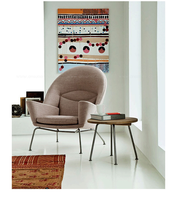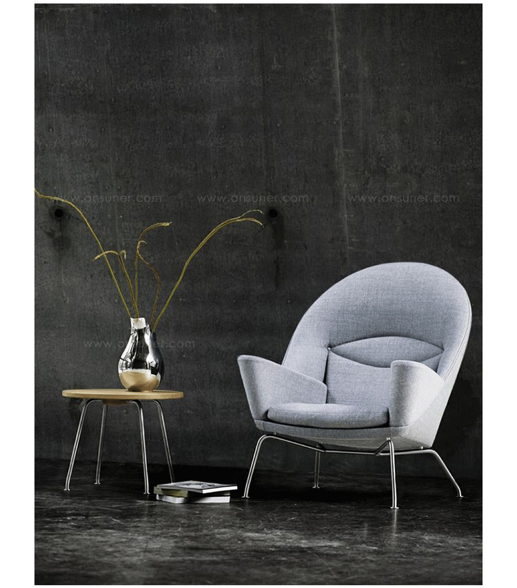 眼睛椅由Carl Hansen & Son与汉斯·j·韦格纳的工作室联合制作,简称CH468。这把椅子是韦格纳在1960年设计的,但之间从来没有在生产。据目前所知,工作室还是原来的样子。在现有椅子的原型上,结合一些照片,我们对它进行生产。CH468是一把雕塑般的安乐椅,背部和颈部支撑提供各种舒服的坐姿。跟韦格纳设计的一样,工匠用木头制作内部框架。拉丝不锈钢的腿部支架,创建了一个平衡,与宽敞的衬垫形成对比。CH468有皮革或织物软垫可选,添加脚凳以达到更好的舒适度。