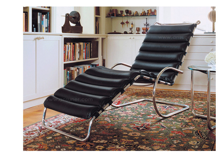 密斯躺椅(MR Adjustable Chaise Lounge)是由密斯·凡·德罗设计的,并由雅帝生产制造,我们是专业生产各种欧洲现代经典家具的公司,所以非常注重设计、质量和原版的一致性,所以我们成产出来的MR Adjustable Chaise Lounge外形独特,结构非常简单,弯曲的不锈钢架有点像布尔诺椅的设计思路,也正体现了德罗的“少即是多”的设计理念。休闲躺椅(MR Adjustable Chaise Lounge)以人体学为基础,设计出了符合人体架构的椅子,坐上去舒适,优雅大方。